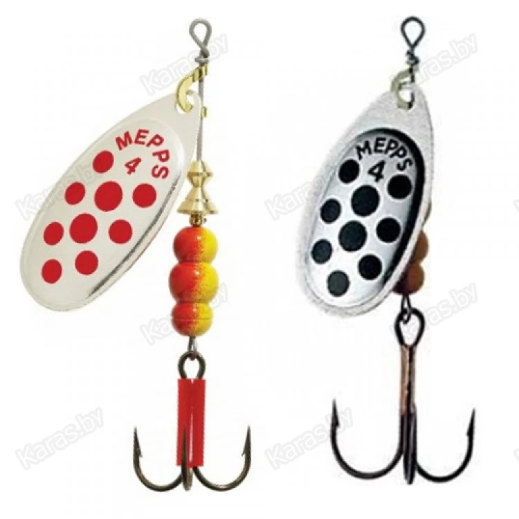 На лепестки MEPPS AGLIA DECOREE нанесены красные и черные точки. Опытные рыболовы, признавая полезность этой окраски, разделяются во мнениях о причинах ее эффективности. Одни считают, что точки на лепестке повышают контрастность окраски, тем самым провоцируя атаку рыбы. По их мнению, доказательством этого служит уловистость AGLIA DECOREE в мутной воде. Другие — наоборот придерживаются мнения, что эти же точки, при вращении сливаясь в мягкие линии, делают окраску спокойнее, что меньше настораживает рыбу и придает приманке внешность насекомого. Недаром MEPPS производит некрупные (№1, 2, 3) размеры данной модели. Лепестки AGLIA DECOREE имеют серебряную, золотую и медную окраски. Вы всегда имеете возможность подобрать наилучшую комбинацию для ваших условий. При вращении угол отклонения лепестка от оси составляет 60°