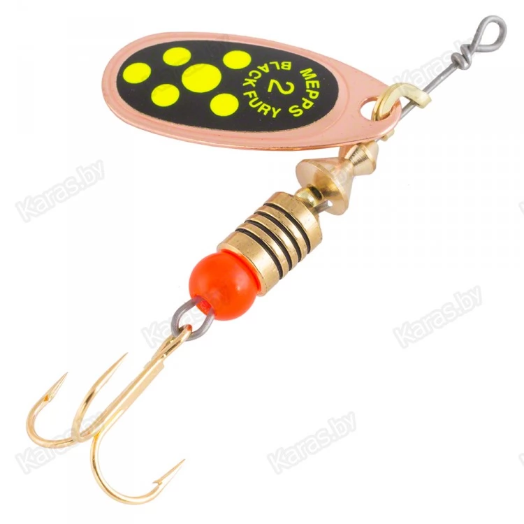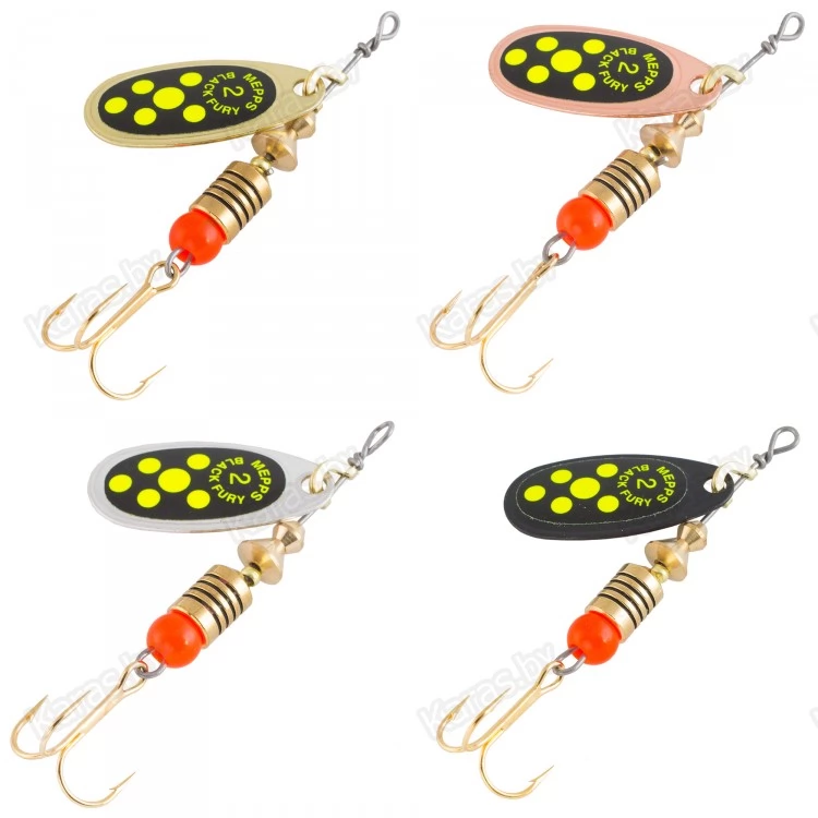 MEPPS предлагает COMET BLACK FURY, как одну из самых уловистых форелевых блесен. Тем не менее, по опыту российских рыболовов, эта разновидность COMET не только подходит для ловли большинства видов рыб, но и в целом ряде случаев не имеет себе равных. Дословно BLACK FURY переводится, как «черная бешеная» или «суматошная чернушка». Все разновидности оснащаются лепестками серебряного, золотого, медного и черного цветов. Между собой они различаются по окраске точек на черном фоне наклеек, расположенных с внешней стороны лепестков.