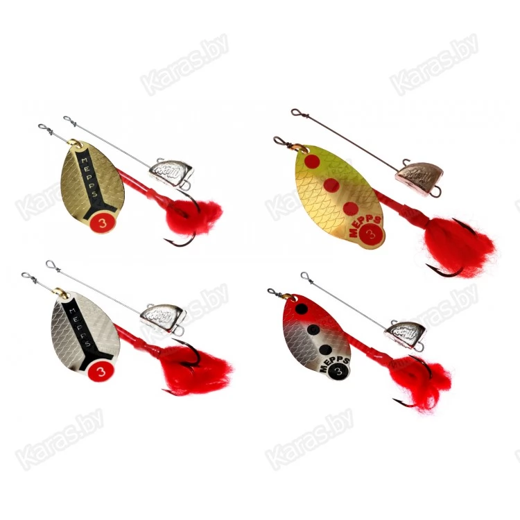 MEPPS LUSOX — это классические вращающиеся блесны для ловли щуки со сменными груз-головками. Они оснащены лепестками серебряного и золотого цветов, обладающими сложной конфигурацией, благодаря которой при вращении создают в воде мощное волновое движение - активно «толкают воду». Это — по настоящему уникальное качество блесны MEPPS LUSOX, поскольку, угол отклонения лепестка при вращении (достаточно медленном) не превышает 25°. Единственная проблема при использовании этой очень уловистой блесны — освоение правильной проводки. В общих чертах, она напоминает обычную ступенчатую, с высоким и немного ускоренным подъемом ото дна и максимально длинным, медленным и пологим спуском.