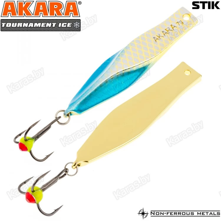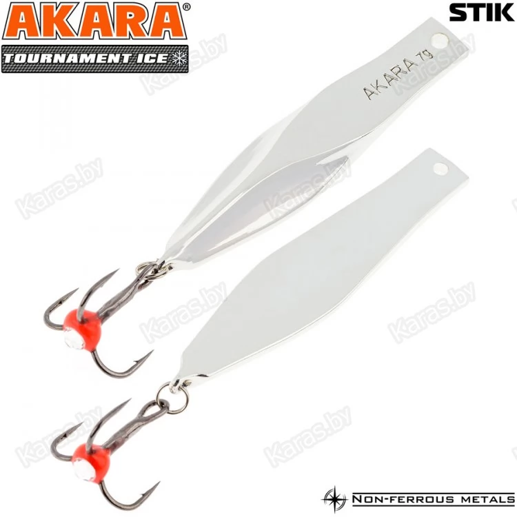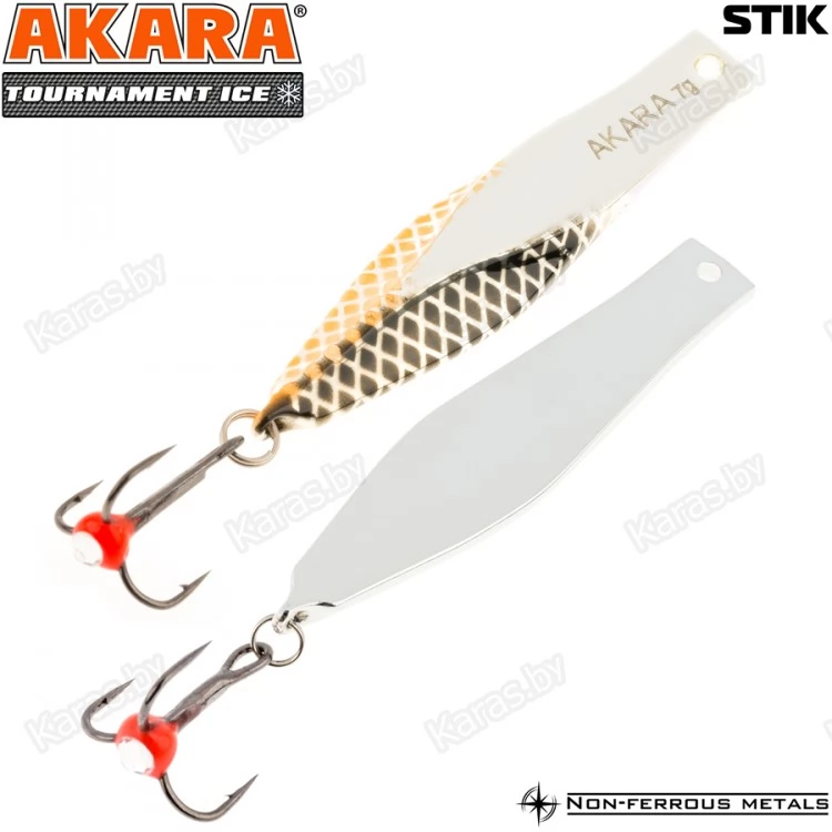 Блесна зимняя Akara Tournament Ice Stik выпускаются в четырех размерах 50, 60, 70 и 80 мм. Блесна предназначена для ловли любой хищной рыбы и в зависимости от размера может использоваться при практически любых глубинах и условиях ловли. Имеет горизонтальную, осыпающуюся игру, с четким отыгрышем в конце.