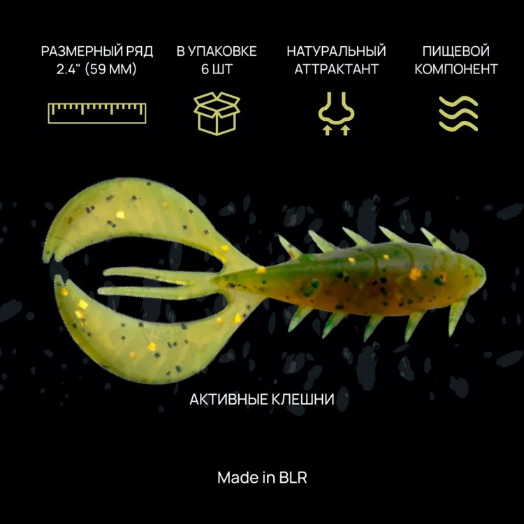 Она сочетает в себе черты классического рачка и сверхподвижного двухвостого твистера. При этом рыболов сам может «переключать» её поведение — всё зависит от выбранного темпа и стиля проводки.