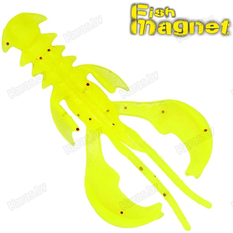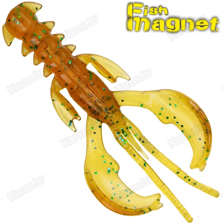 Приманка выполнена из мягкого силикона с добавлением пищевых добавок, представляющая собой имитацию рака с очень активной игрой клешнями, которые после попадания в водоём сразу начинают попеременно или синхронно колебаться даже во время одной проводки в зависимости от потоков воды. Этот эффект оживляет приманку, провоцирую хищника на атаку. Приманка работает на всех стадиях проводки, в том числе при медленном свободном падении, «вкусно» размахивая лапами и покачивая всем телом, она очень активна на подъеме приманки и конечно же в толще воды, при равномерной проводке. Наилучший результат приманка показывает на классических джиговых монтажах с джиг-головкой или «чебурашкой», но благодаря боковым лапам-стабилизаторам и выверенной геометрии тела, с огромным успехом применяется и на неогруженных монтажах с открытым крючком или офсетом. Отводной поводок, Dropshot, Carolina rig, Texas rig — это его стихия.