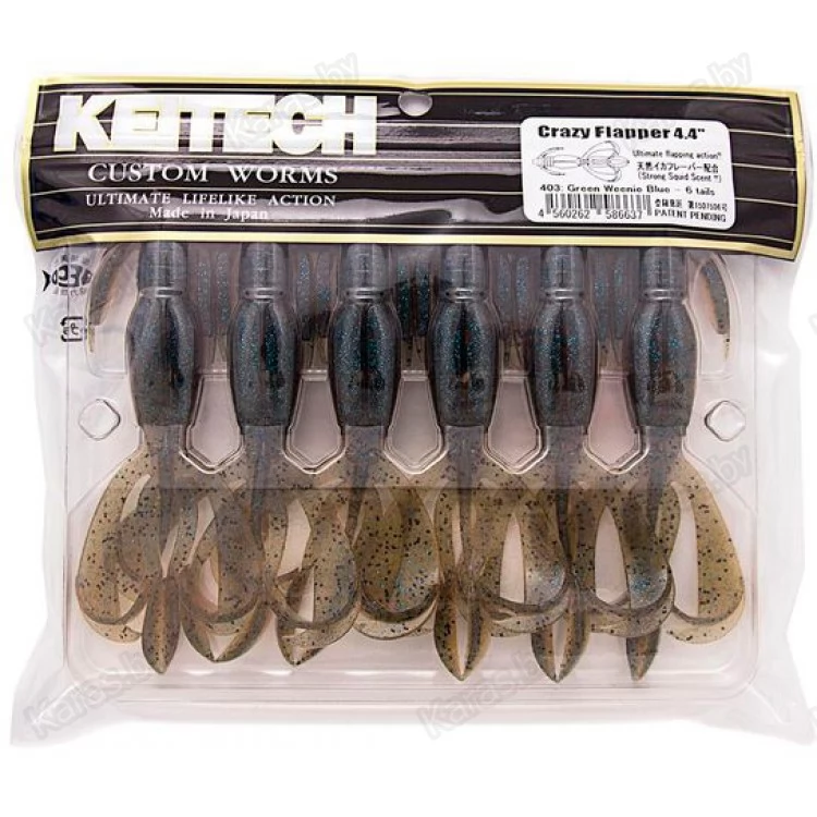 «Сумасшедшие ласты» - именно так звучит дословный перевод названия этой "креатуры" от Keitech. Crazy Flapper изготовлен из съедобного материала нескольких видов, это придает приманке идеальное сочетание мягкости и прочности. Секрет уловистости Флэппера таится в его обтекаемом теле и мега подвижным щупальцам и «ластам», которые приводятся в действие при малейшем движении приманки. Благодаря этому Crazy Flapper с минимальной массой грузила активно играет, привлекая хищника.