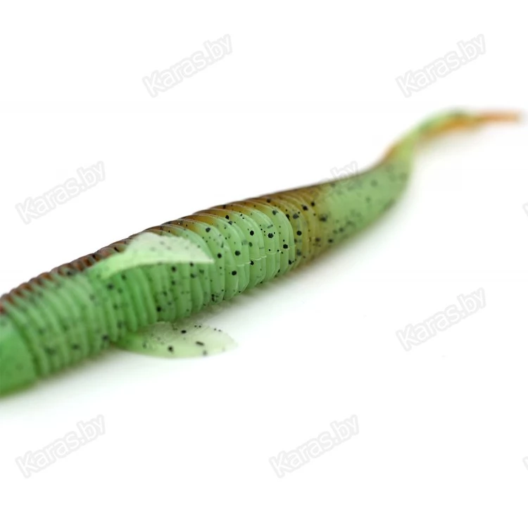 Подвижные реалистичные плавнички и асимметричный V-образный хвост, у которого верхняя часть длиннее нижней также добавляют “жизни” приманке.