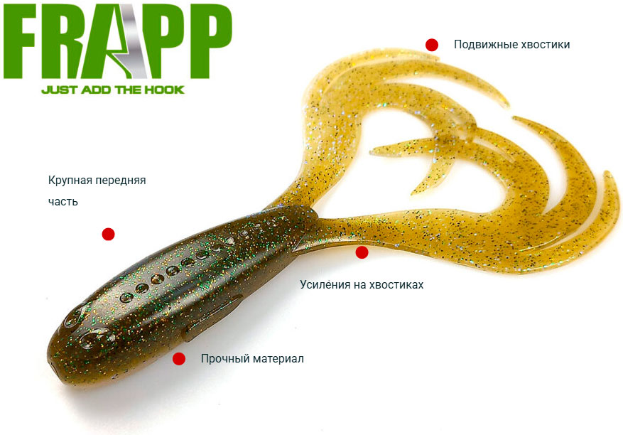 Double Croak — совместный проект FRAPP и MAIN TARGET. Крупный, максимально адаптированный под наши условия ловли двухвостый твистер.