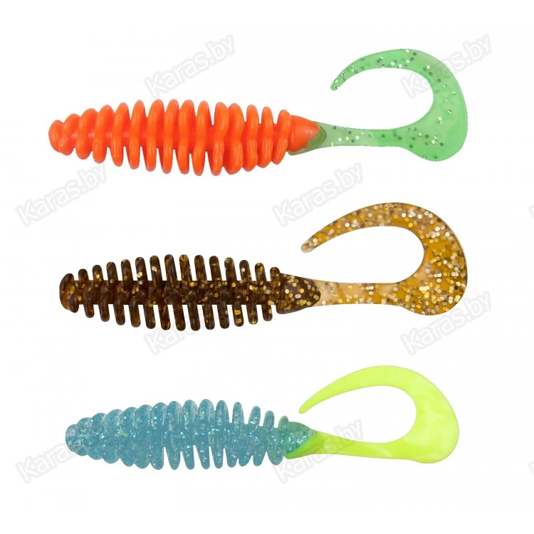 Этот твистер имеет необычную геометрию тела: оно достаточно объемно за счет выступающих по всей его длине «ребер», которые при проводке создают оригинальный шумовой эффект. Оканчивается приманка небольшим хвостом серповидной формы. В воде Turbo имеет очень насыщенную и заменую игру. В наших водоемах он отлично зарекомендовал себя, в первую очередь, при ловле щуки. Из-за особенностей строения тела приманка имеет повышенную проходимость при ловле в корягах с офсетным крючком. Позволяет использовать себя не только в классическом джиге, но и при ловле на поводковые оснастки. Крайне эффективной является проводка с волочением и подыгрыванием удилищем. Выпускается в двух размерах: 3 и 5 дюймов.