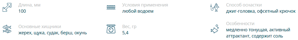 В разработке данной силиконовой приманки применены не только уже зарекомендовавшие себя приемы, но и новые. В частности – это соотношение длины хвостовой части к телу приманки. Пропорции приманки составляют примерно 60% к 40%, что делает хвостовую часть, вкупе с укрупненной пяткой, очень подвижной, что не может не привлекать хищника.