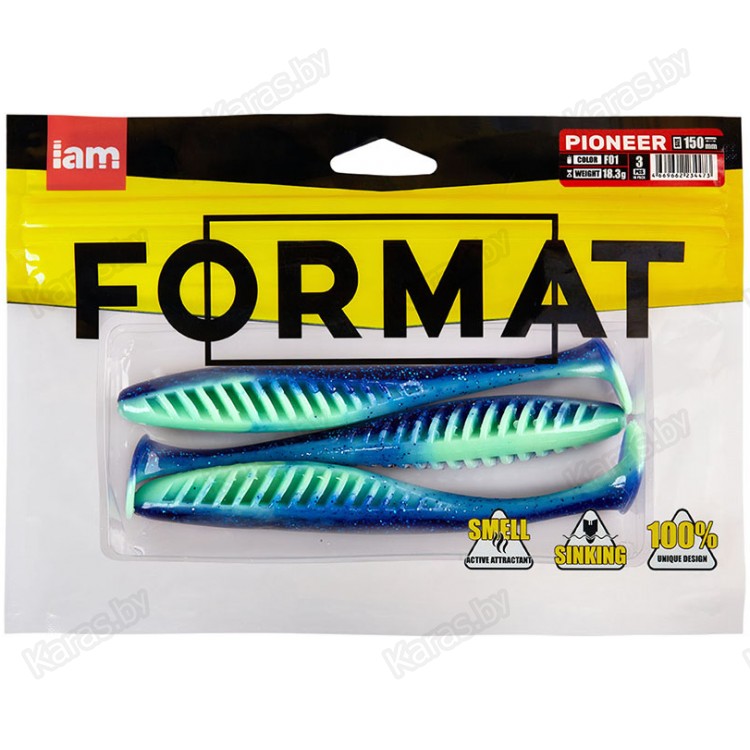 Силиконовая приманка Pioneer (англ.: первопроходец зачинатель), как и другие приманки компании IAM и торговой марки FORMAT, данная приманка не просто так носит такое название. Это название приманка получила сразу по двум причинам. Во-первых: она стала первой силиконовой приманкой, выпускаемой под торговой маркой FORMAT, а во-вторых: данная модель совместила в себе весь накопленный инженерами компании опыт, который был реализован в данной модели.