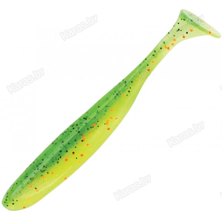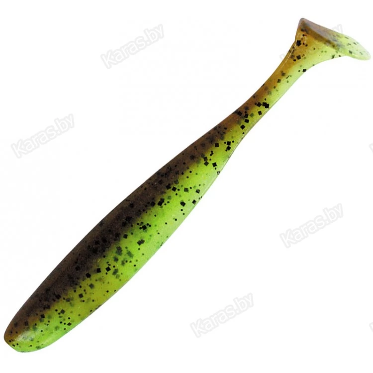 Keitech EASY SHINER – классический виброхвост, который придется по нраву рыболовам, предпочитающим традиционные формы приманок, но вместе с тем – желающим попробовать в работе современную съедобную резину. Тело приманки сильно сплющено с боков, а тонкий хвост заканчивается достаточно массивной лопастью. Это придает этому виброхвосту резко очерченную средне амплитудную высокочастотную игру. Такая приманка будет актуальна всегда и везде – на тяжелом джиге, в не огруженном оснащении, на «Каролине» и судачьем «отводном поводке». Приманка изначально проектировалась под оффсетный крючок, о чем свидетельствуют специальные прорези в верхней и нижней части тела, но ничего не мешает оснастить ее двойником, или обычной джиг-головкой. За счет большого количества соли, входящей в состав материала, у EASY SHINER достаточно сильная отрицательная плавучесть, что позволяет его использовать в оснастках «Wacky» и «Neko». Выпускается KEITECH EASY SHINER в следующих размерах – 2, 3, 3.5, 4, 4.5, 5, 6.5 и 8 дюймов.