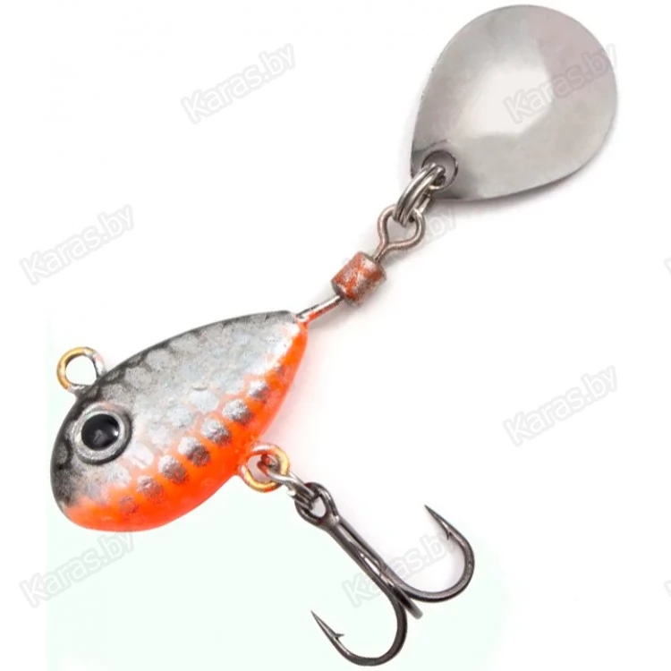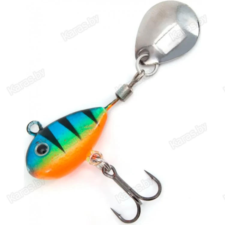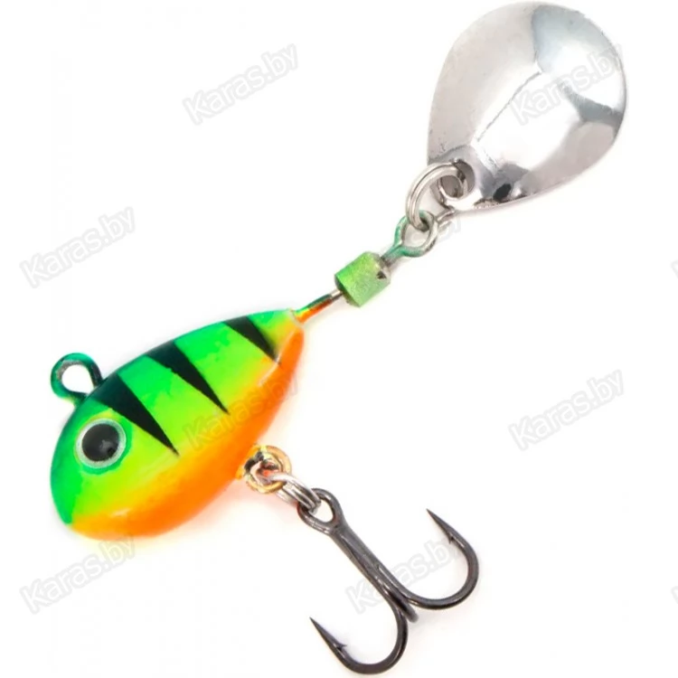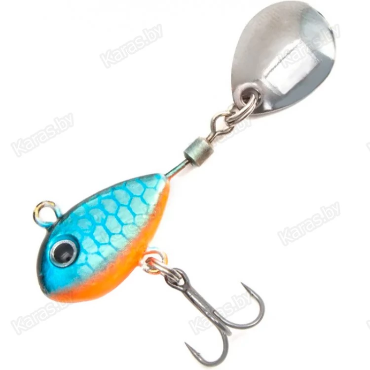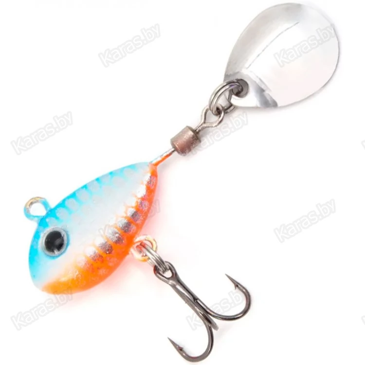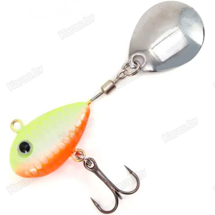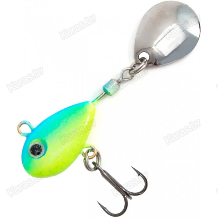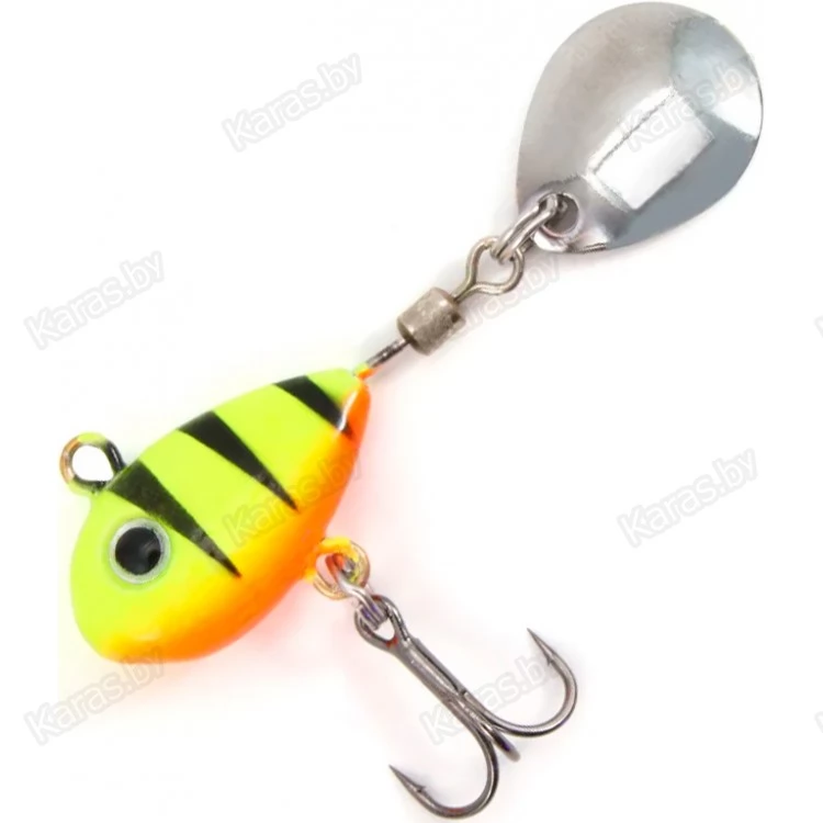 Тейл-спиннер оснащён лепестком, свободно вращающемся на вертлюжке. Основная часть служит в качестве грузила, и выполнена в форме небольшой рыбки. Тело приманки покрыто пропионатом – устойчивым к деформациям пластиком. Покрытие предотвращает деформации тейлспиннера в случае ударов о твёрдые предметы. В нижней части расположен крючок-тройник, обеспечивающий надёжную засечку рыбы. Идеально подходит для ловли хищной рыбы. Рекомендуется использовать эту приманку на водоёмах с чистым дном. Конструкция крючка и его расположение не предназначены для донных проводок. Приманка подходит для ловли жереха, окуня, щуки, судака, голавля, язя. Рыболовная приманка надёжно цепляет рыбу на острый, упругий тройник. Несмотря на свои небольшие размеры, вертушка обладает отличными полетными характеристиками, что позволяет с легкостью делать дальние забросы.