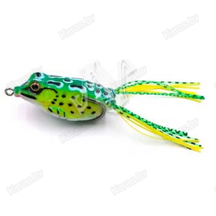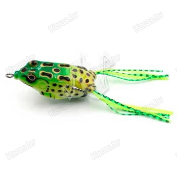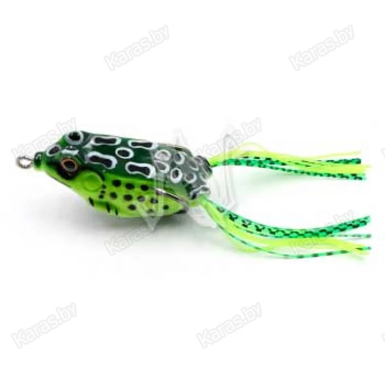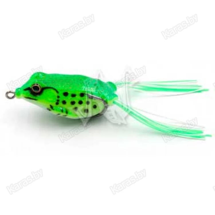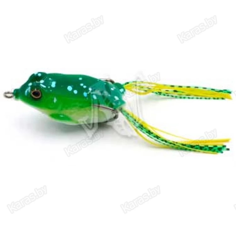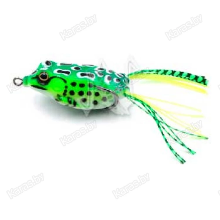 Лягушка-незацепляйка Namazu Frog – реалистичная силиконовая имитация лягушки. Поверхностная приманка без труда преодолевает растительность, что делает ее незаменимой при облавливании сильно заросших водоемов, даже в тот период, когда ловить на обычные воблеры и блесны очень сложно. Незацепляемость достигается благодаря тому, что крючок, которым оснащена приманка, направлен острием вверх, острие при этом достаточно плотно прилегает к телу. Весьма реалистично играет в воде. Тело приманки имеет два пучка силиконовых нитей, вызывающих еще больший интерес у хищника. Изготавливается из мягкого материала и при поклевке легко сжимается, быстро освобождая крючки, что гарантирует эффективную подсечку и снижает вероятность схода рыбы. Приманку легко анимировать.