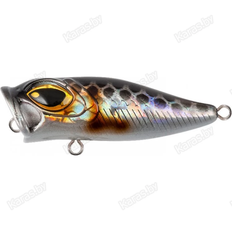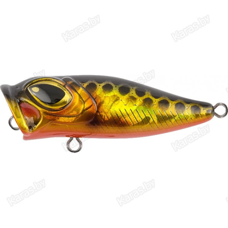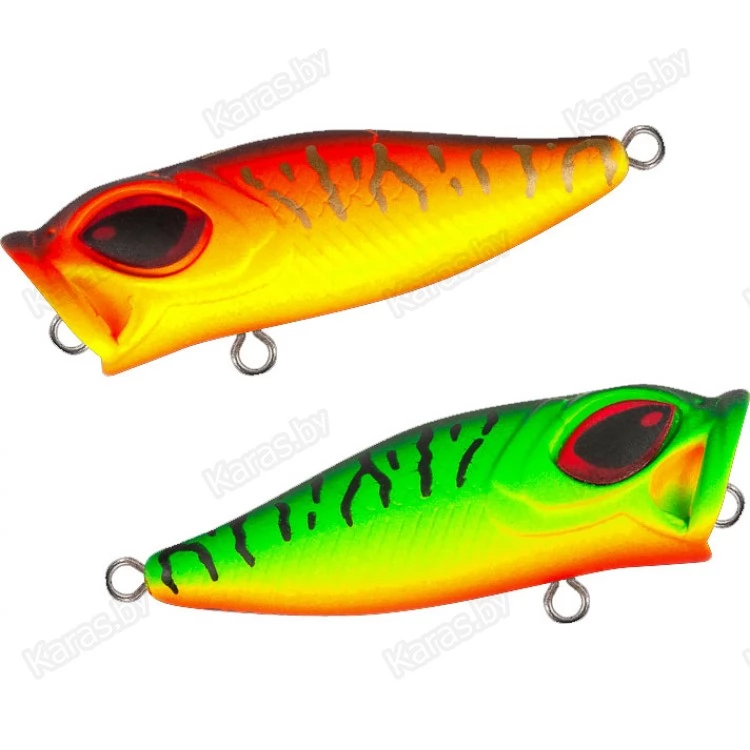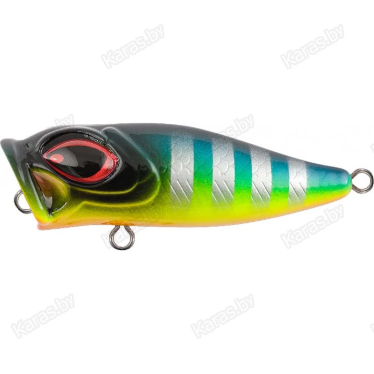 Особенности дизайна: ZOKI 44F имеет две разделенные боковой линией рельефные фактуры поверхности. Верхняя часть выполнена в виде мелких насечек-чешуек, нижняя - в виде косых мелких насечек. Головная часть поппера рельефно имитирует открытую пасть и жаберные крышки рыбки. Большие вклеенные объемные глаза завершают дизайн приманки. ZOKI 44F имеет систему баланса, выполняющую так же функцию шумовой камеры. Приманка оснащена двумя острыми тройниками соответствующего размера и надёжной фурнитурой. Поппер имеет современное качественное лакокрасочное покрытие и широкий выбор расцветок в каталоге.