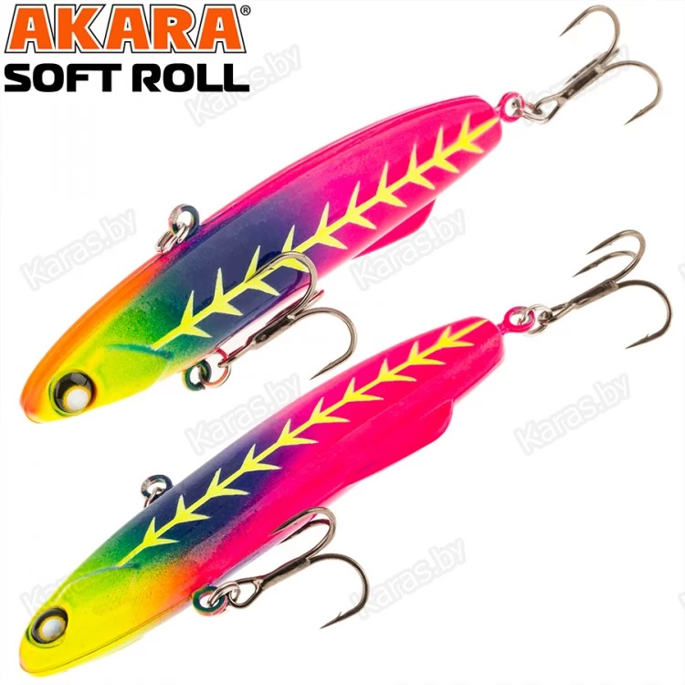 Отличительной особенностью данной приманки, является силиконовый материал, использованный в изготовлении. Приманка достаточно прочная, и не сильно повреждается хищником. Раттлин Soft Roll обладает неповторимой и естественной игрой, близкой, по характеру, к балансирам, но с более медленным возвращением в исходную точку после взмаха. В подвешенном состоянии, держится строго горизонтально, в воде нос опускается ниже, что позволяет разнообразить игру. Выпускается в трех размерах 70, 80 и 90 мм.