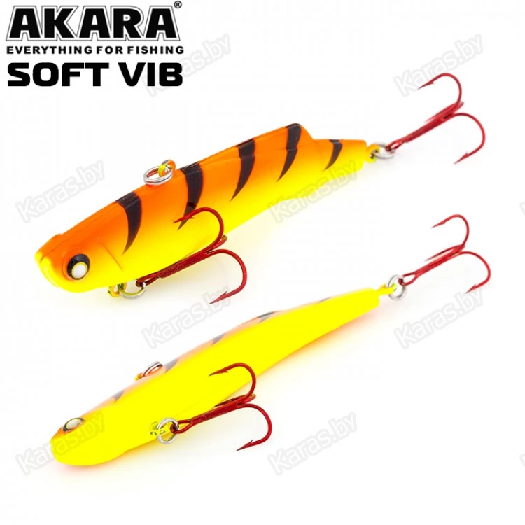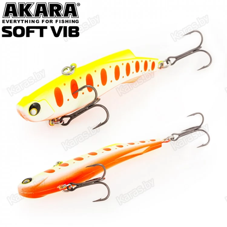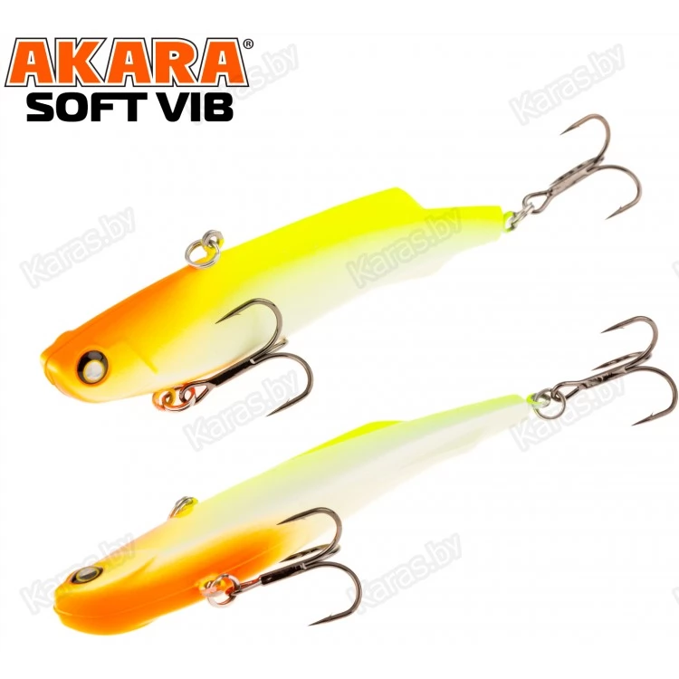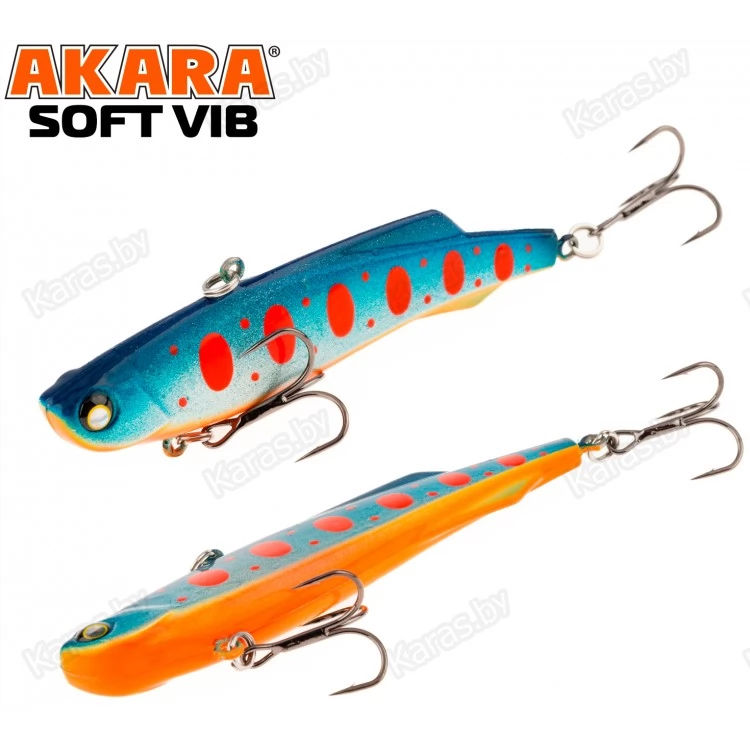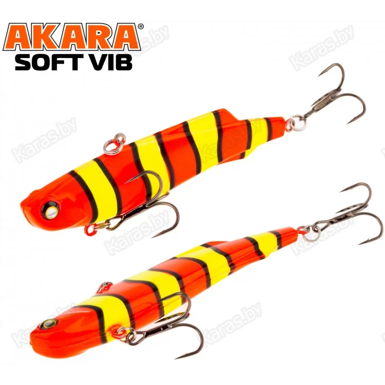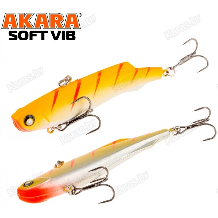 Воблер Akara Soft Vib – безлопастный воблер класса раттлин (rattlin). Отличительная особенность этой приманки – силиконовое тело. Именно благодаря силикону, который похож по жесткости на тело рыбки, при поклевке, хищник не сразу выплевывает приманку, что позволяет сделать своевременную подсечку. Так же, силикон дает возможность пропитывать его разного рода аттрактантами, что позволяет соблазнить на поклевку даже самую пассивную рыбу. В первую очередь Akara Soft Vib предназначен для отвесной ловли судака в зимнее время. Однако с большим успехом применяется для ловли щуки и окуня, как со льда, так и по открытой воде в теплое время года. Тип плавучести – быстро тонущий (top sinking).