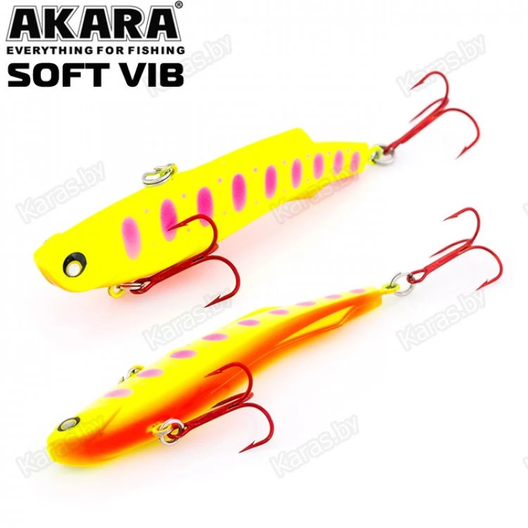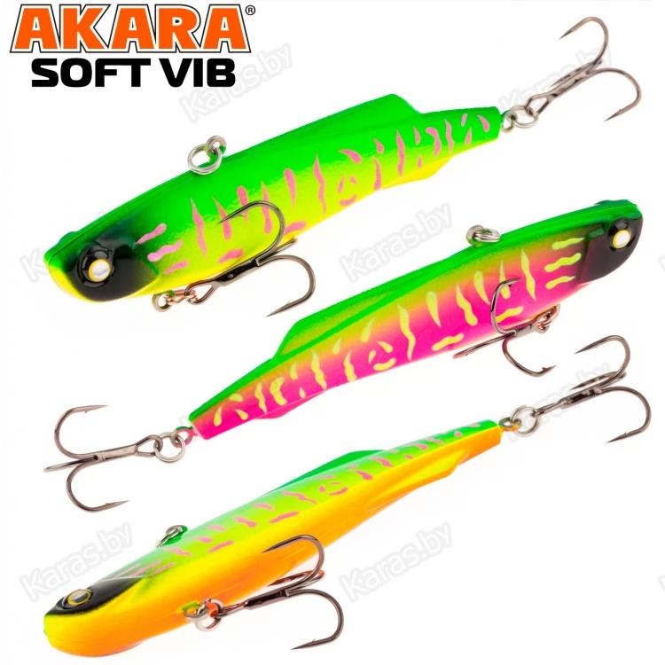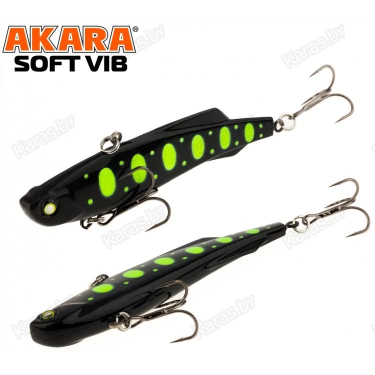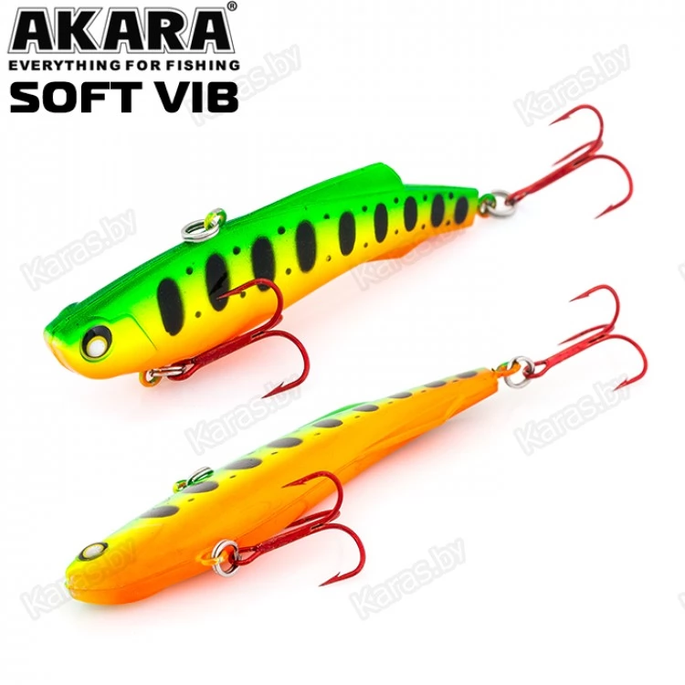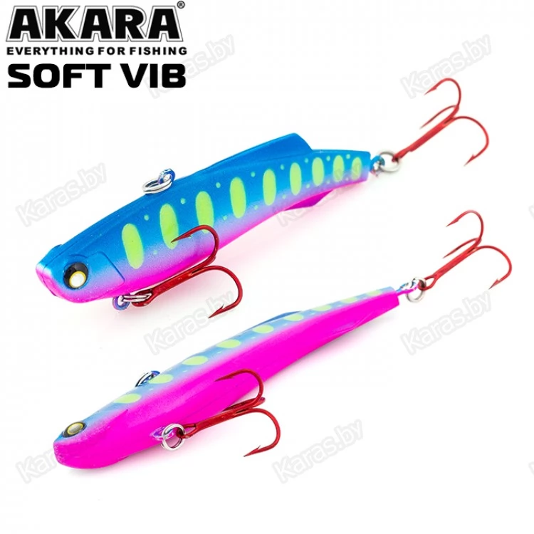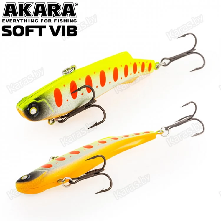 Воблер Akara Soft Vib – безлопастный воблер класса раттлин (rattlin). Отличительная особенность этой приманки – силиконовое тело. Именно благодаря силикону, который похож по жесткости на тело рыбки, при поклевке, хищник не сразу выплевывает приманку, что позволяет сделать своевременную подсечку. Так же, силикон дает возможность пропитывать его разного рода аттрактантами, что позволяет соблазнить на поклевку даже самую пассивную рыбу. В первую очередь Akara Soft Vib предназначен для отвесной ловли судака в зимнее время. Однако с большим успехом применяется для ловли щуки и окуня, как со льда, так и по открытой воде в теплое время года. Тип плавучести – быстро тонущий (top sinking).