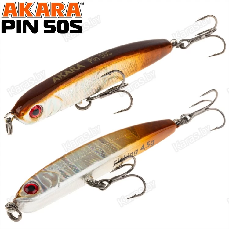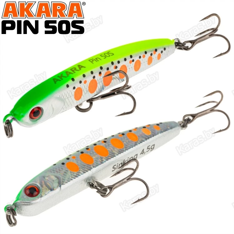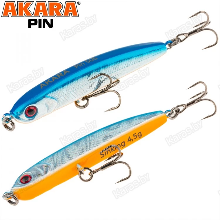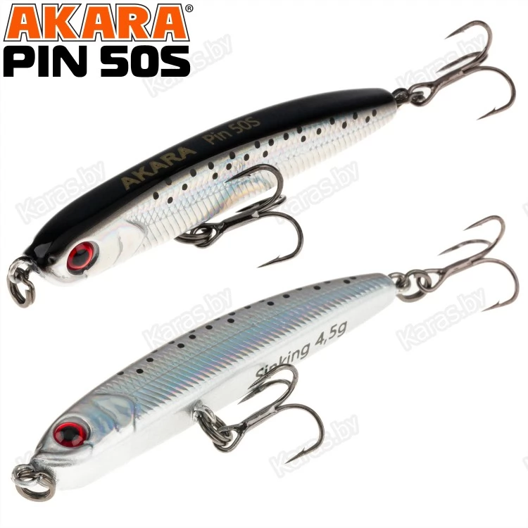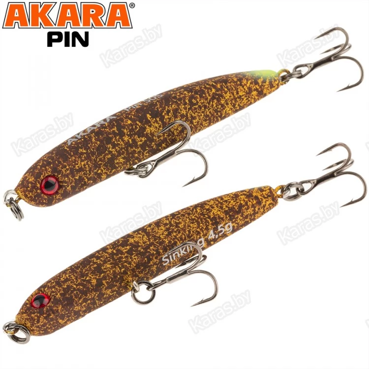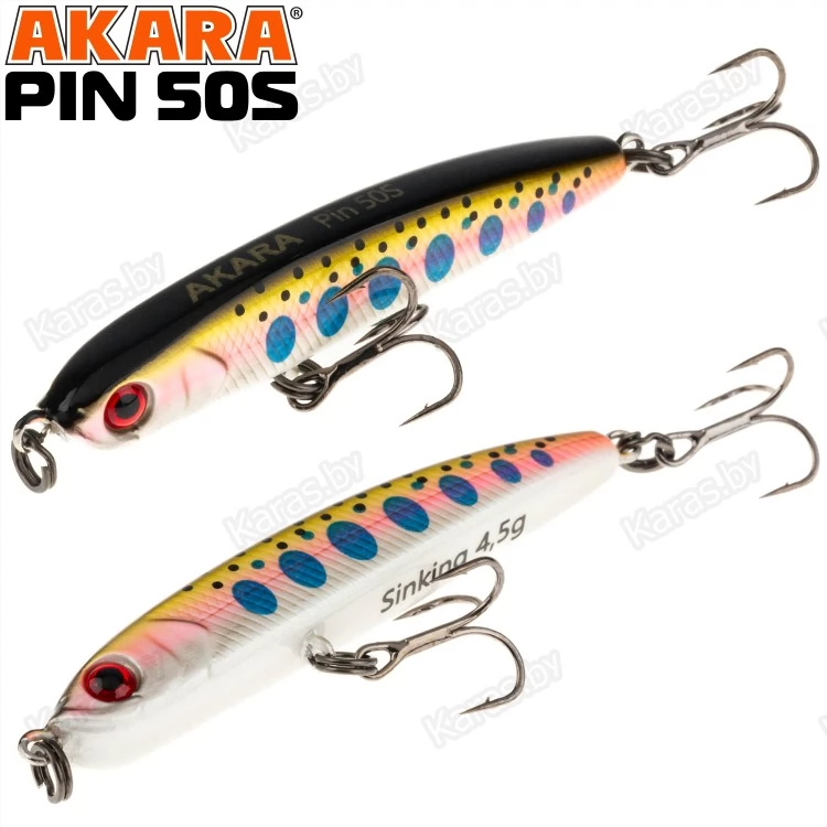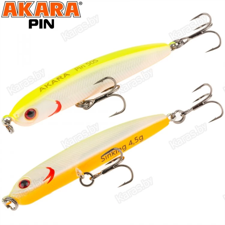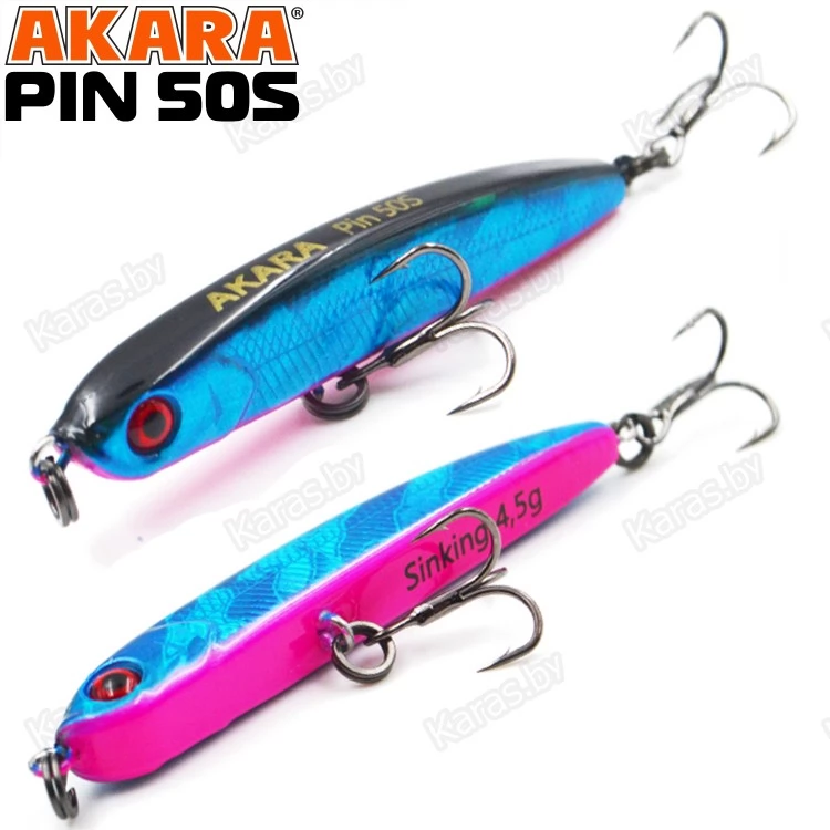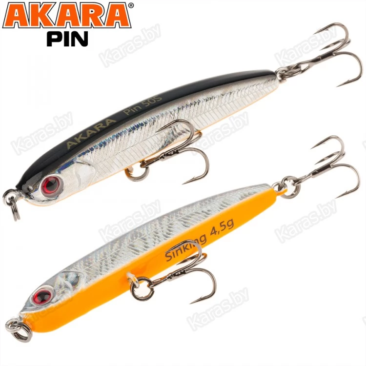 Воблер Akara Pin - даже при ловле в окуневых котлах не всегда получается удачная рыбалка. Чаще всего это происходит потому, что приманка сильно отличается от малька, за которым охотится окунь. Не обязательно попасть в цвет, но форма и размер приманки должны соответствовать пищевому объекту окуня. Akara Pin здесь приходится очень кстати. Стик рассчитан на рывковую проводку с паузами. На паузах приманка тонет и покачивает боками, изображая обессилившую добычу. Полосатый разбойник не может устоять против такого приема. Тонущий.