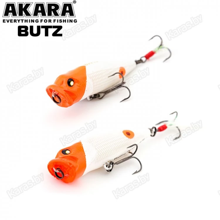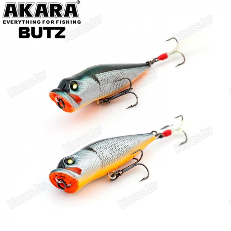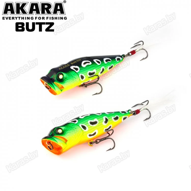 Akara Butz 55F - поппер с реалистичной детализацией головы и тела. Отличительная особенность данной приманки - это специальные каналы в головной выемке (плевалке), пропускающие через себя воду при рывках удилищем. Благодаря этим инновациям поппер Akara Butz кардинально отличается от классических приманок схожего типа. Применяется для ловли в заросших участках водоемов. Кроме привычных для спиннингистов щук и окуней отлично подходит для ловли белого хищника. Приманка снабжена звонков погремушка, тип плавучести - плавающий (F), поверхностный. Выпускается в двух размерах.