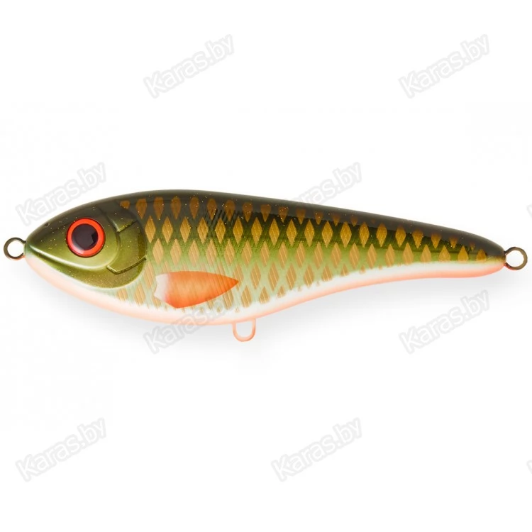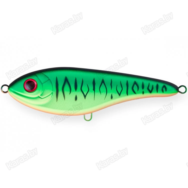 Приманка обладает очень красивой игрой благодаря особенному расположению огрузки. Во время пауз проводки приманка соблазнительно покачивает боками. На коротких ритмичных рывочках джеркбейт красиво рыскает из стороны в сторону. На более размашистых рывках игра Buster Jerk ll приобретает широкую амплитуду. В проводку приманки обязательно нужно включать непродолжительные паузы. Джеркбейт очень прост в обращении и легко управляем. Рекомендуется оснащать данную приманку упругим стальным или флюорокарбоновым поводком. Это защитит леску от зубов хищников, а также предотвратит захлест крючков за леску при проводке. Strike Pro Buster Jerk ll предназначен для ловли крупной щуки.