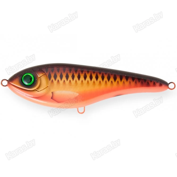 Strike Pro Buster Jerk ll - чуть меньшая по размеру версия знаменитого джеркбейта Buster Jerk. Формой своего корпуса воблер имитирует широкотелую рыбку. Крупный тонщий воблер имеет красивые и реалистичные вариации раскрасок, оснащен качественными заводными кольцами и острыми крючками Owner. При проводке воблер издает низкочастотный шум, благодаря шарикам, расположенным внутри корпуса, чем привлекает хищника с больших расстояний, что будет особенно эффективно при ловле в мутной воде или в условиях недостаточной видимости.