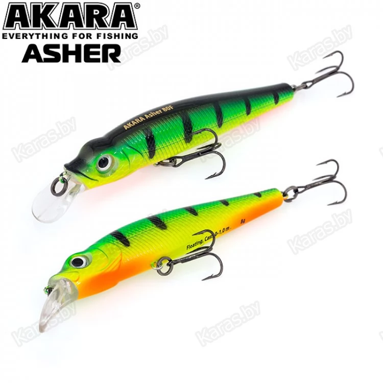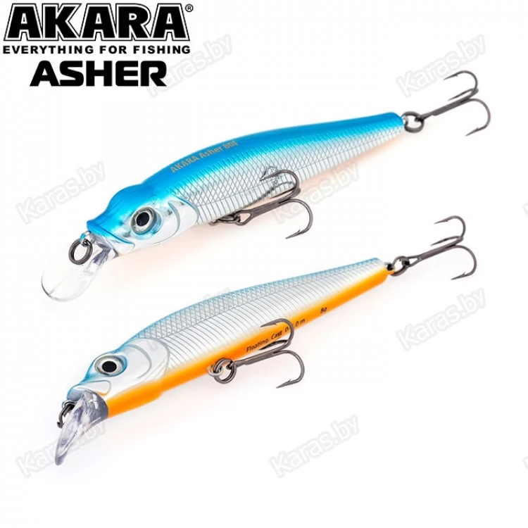 Akara Asher 80F – плавающий воблер класса «минноу» длиной 80 мм. Благодаря лопасти оригинальной формы стабильно работает как на рывковой проводке, так и на равномерной. Отлично держит сильное течение, не сбиваясь с игры. Подходит для ловли многих видов рыб как хищных, так и мирных. Заглубление при ловле в заброс до 1,0 м. Допускается применение данной модели воблера для ловли «троллингом». Оснащен крючками из высокоуглеродистой стали. Новинка 2019 года.