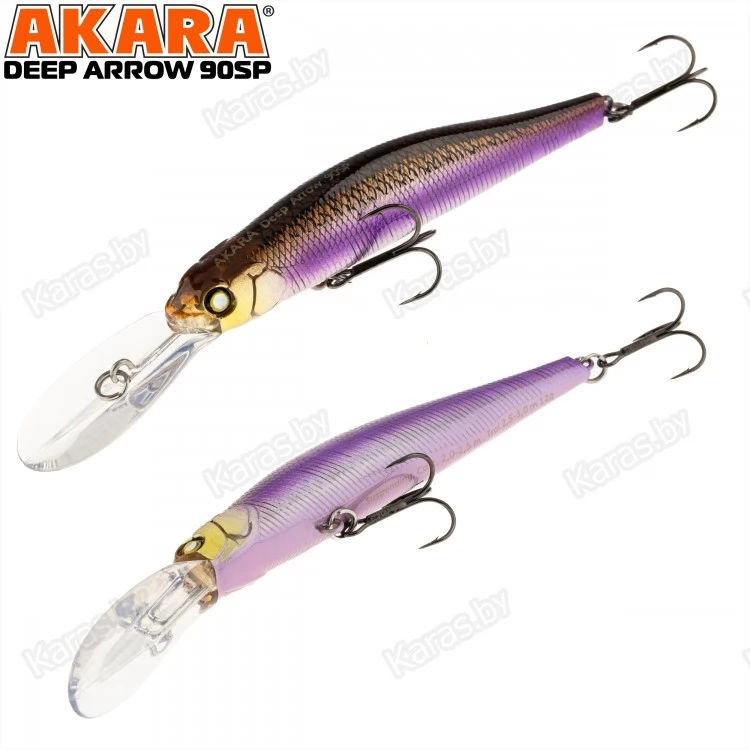 Воблер Akara Deep Arrow дополнил и без того широкую линейку воблеров данной модели. В отличие от своих более крупных "собратьев", это воблер имеет размер 90 мм., и отличается большой лопатой, благодаря которой он может заглубиться до 3-х метров. Также как и другие воблера данной модели он оснащен магнитной системой дальнего заброса, за счет которой достигается максимальная дальность заброса. Воблер отлично подойдет не только для троллинга, но и для ловли в заброс как щуки, судака и крупного пелагического окуня. Основная стихия этого воблера - это большие озера с солидными глубинами. Но и на реке этот воблер себя отлично показал, так как он хорошо держит течение и не выскакивает на поверхность даже при агрессивной рывковой проводке. К слову сказать, этой приманкой можно ловить самыми разными способами, начиая от равномерной проводки, проводки stop and go, так и применяя твичинг, причем даже самый агрессивный и жесткий. Широкая гамма расцветок позволит подобрать нужную под самые разные условия освещенности и прозрачности воды. А прочные, качественные тройники обепечат надежное вываживание даже трофейного хищника.