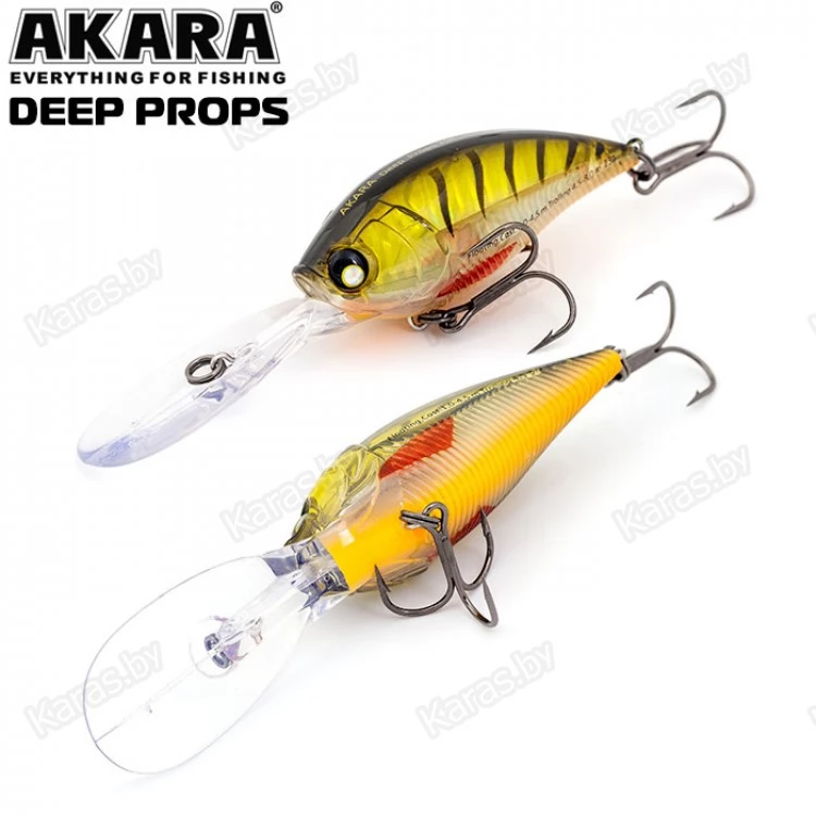 Воблер Akara Deep Props 70F - троллинговый воблер класса кренк (Crank). Приманка имеет большой вес при компактных размерах. Характеризуется стабильной и агрессивной игрой практически при любых условиях ловли. Отлично подойдет для облова разноплановых водоемов как с течением, так и без такового. Основными объектами охоты являются щука и сом, так же попадаются и другие хищники – судак и окунь. Воблер плавающий (floating), шумовой. Заглубление при ловле троллингом от 4,5 до 8,0 м., при кастинге от 1,0 до 4,5м.