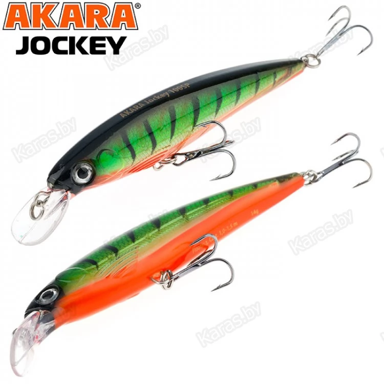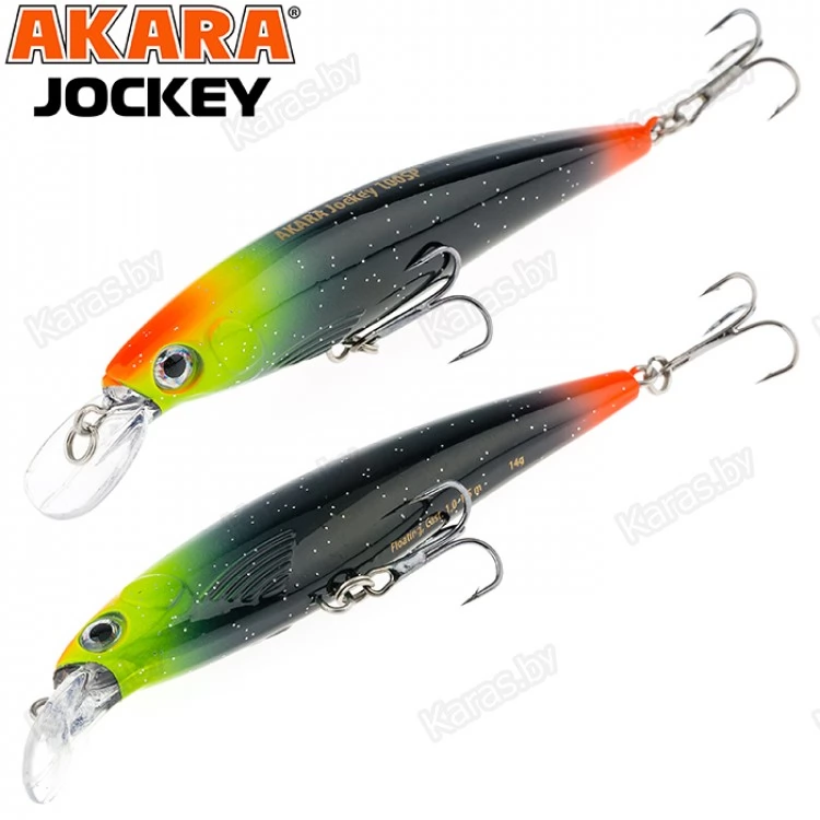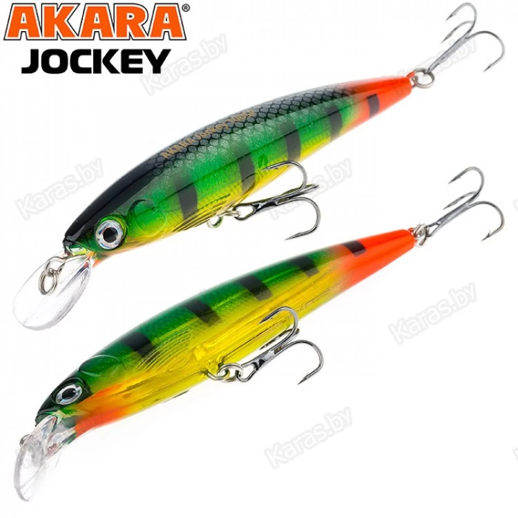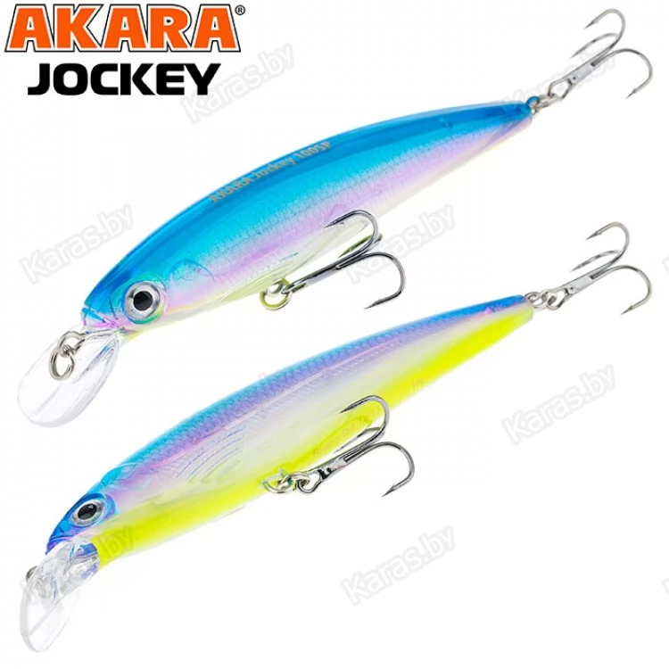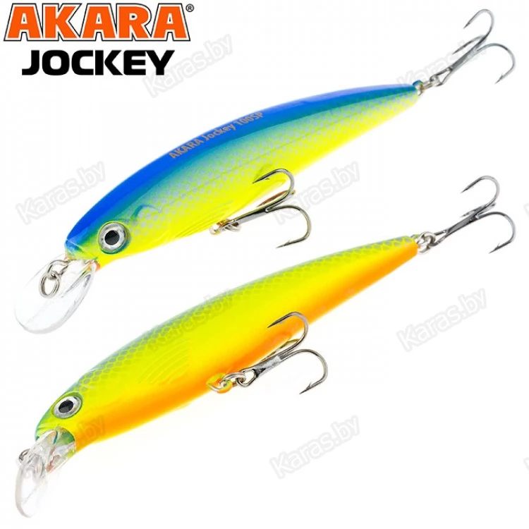 Воблер Akara Jockey — уловистый воблер класса шед. Имеет довольно высокое и вытянутое тело, благодаря чему игра приманки сохраняет стабильность на всех фазах проводки. Рекомендован для ловли троллингом и в заброс. Чаще всего применяется при ловле щуки, судака, окуня и других хищников. Тип плавучести — суспендер, нейтральная плавучесть (SP). Оснащается крючками из высокоуглеродистой стали.