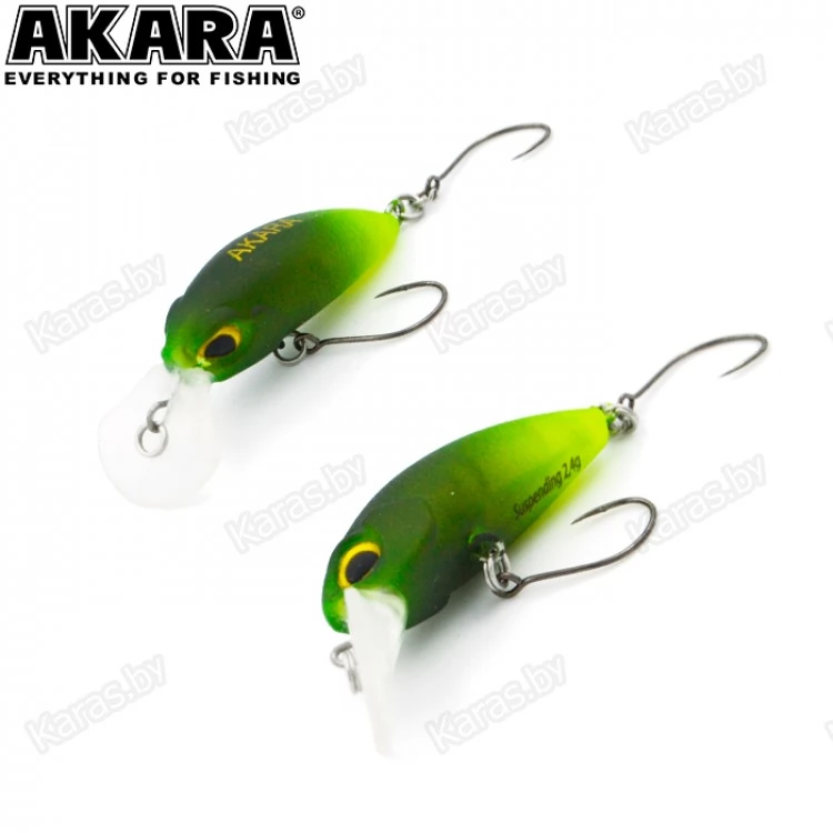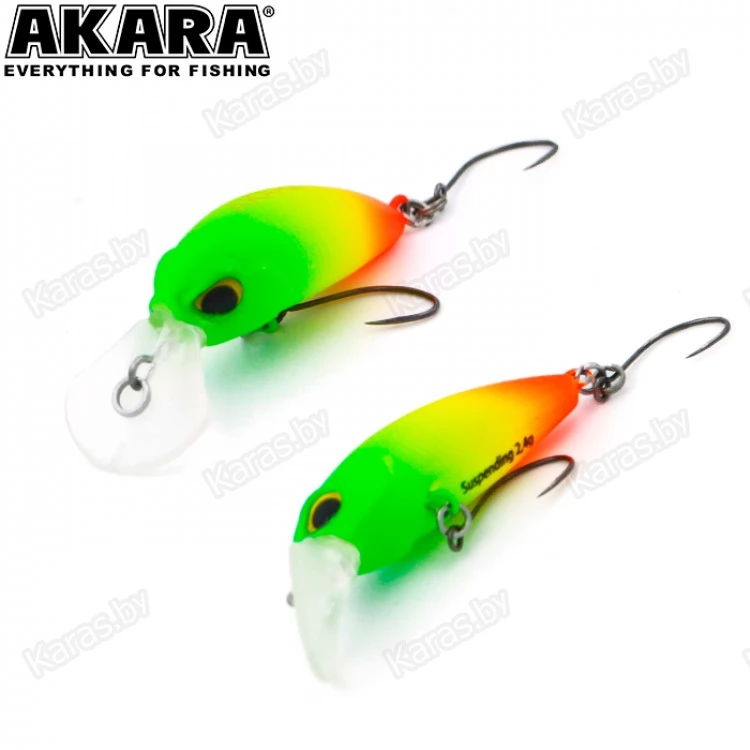 Воблер Akara Liga suspending - является классикой рыбалки. Четкие колебания воблера на равномерной проводке не могут оставить рыбу равнодушной, и она атакует приманку, даже если сегодня сыта. С этой приманкой возможна и рывковая анимация. Хаотичные движения воблера придутся по вкусу форели, окуню и другим хищникам. Классическая проводка для него равномерная или близко к равномерной.