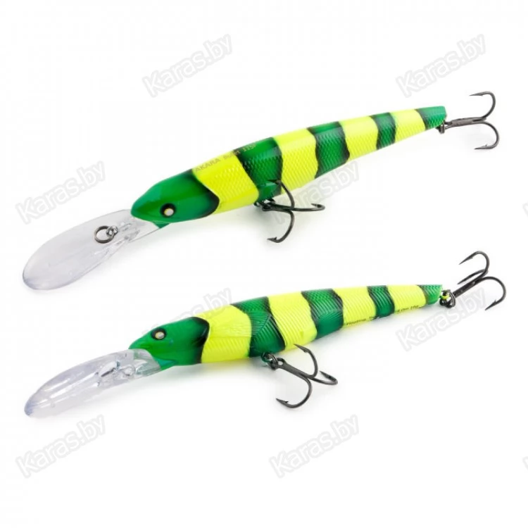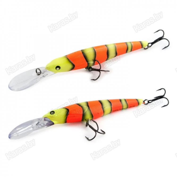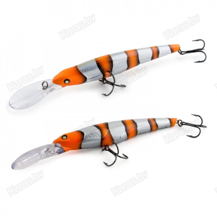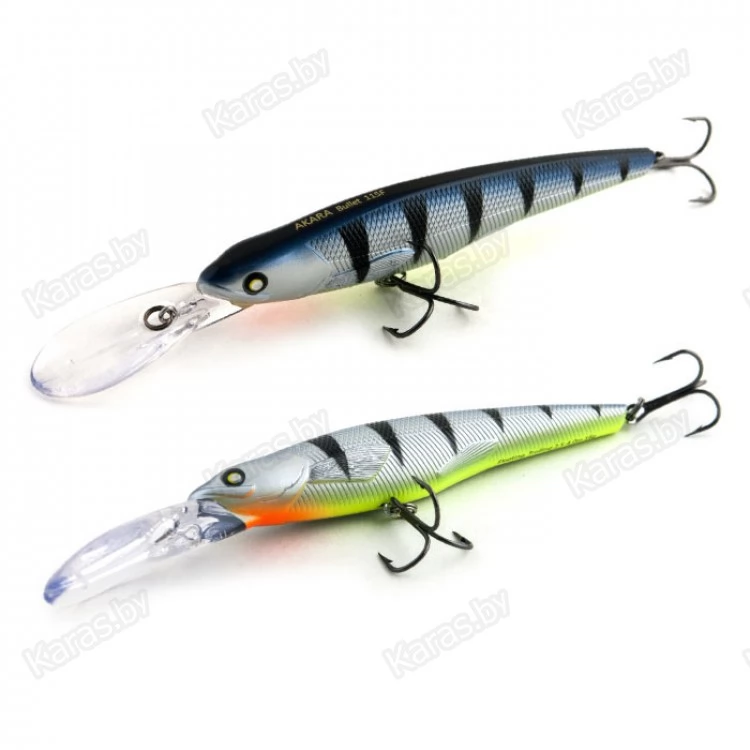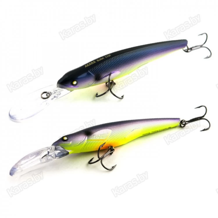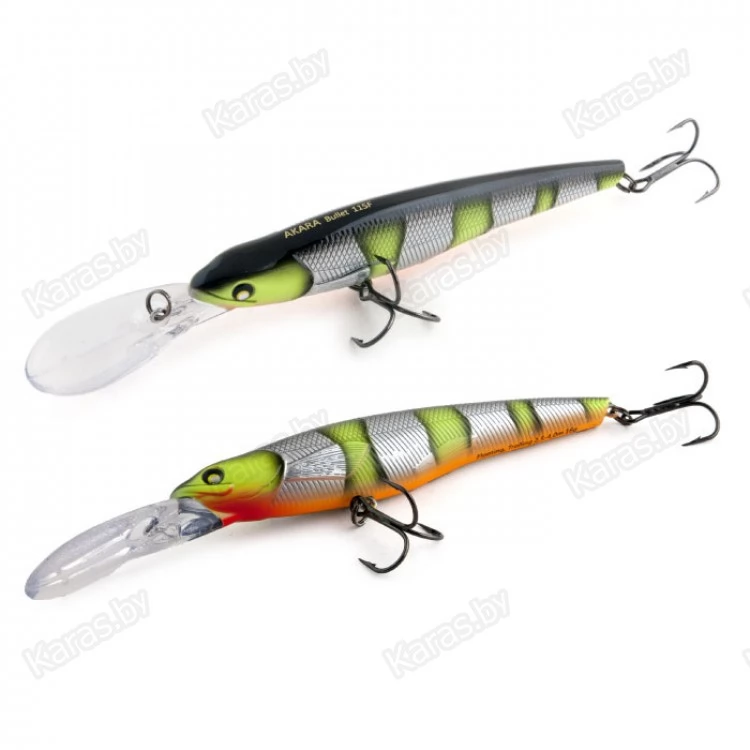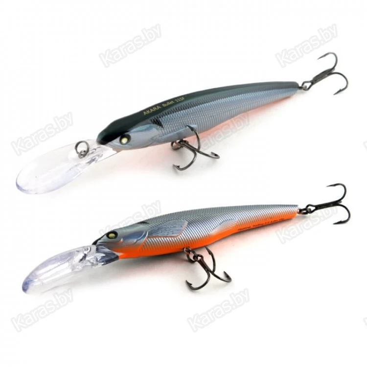 Bullet 115F - троллинговый воблер класса минноу имеет неповторимую игру, которая меняется в зависимости от скорости проводки. Средняя размашистая игра при медленной проводке очень нравится щуке, а мелкая и частая дрожь при быстрой проводке эффективно работает по судаку. Плавающий. Акустический. Заглубление при троллинге от 2,5 до 4,0 м.