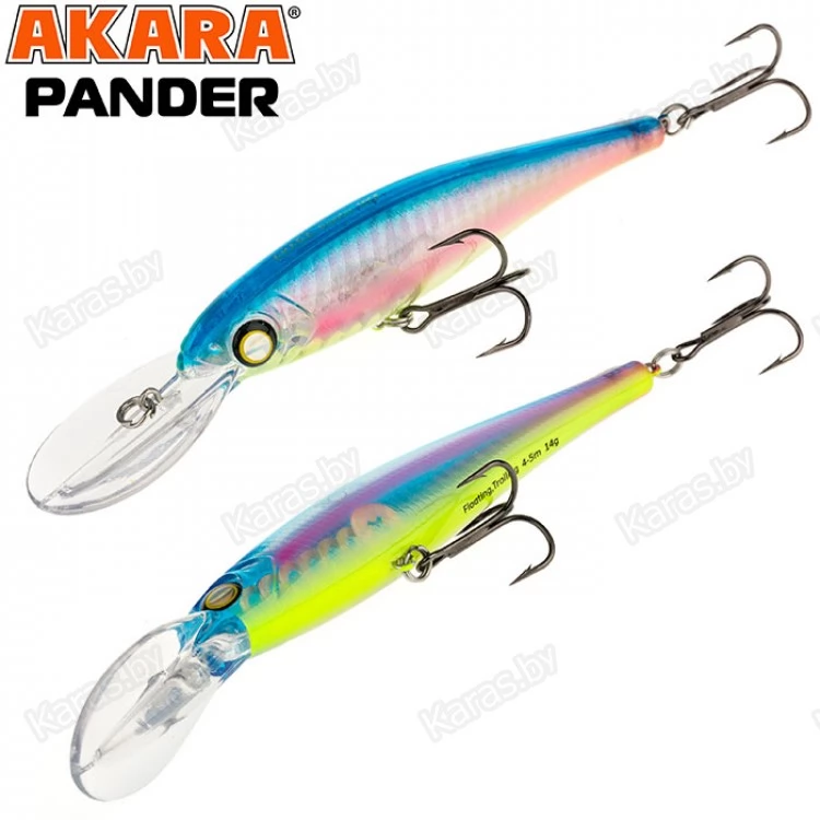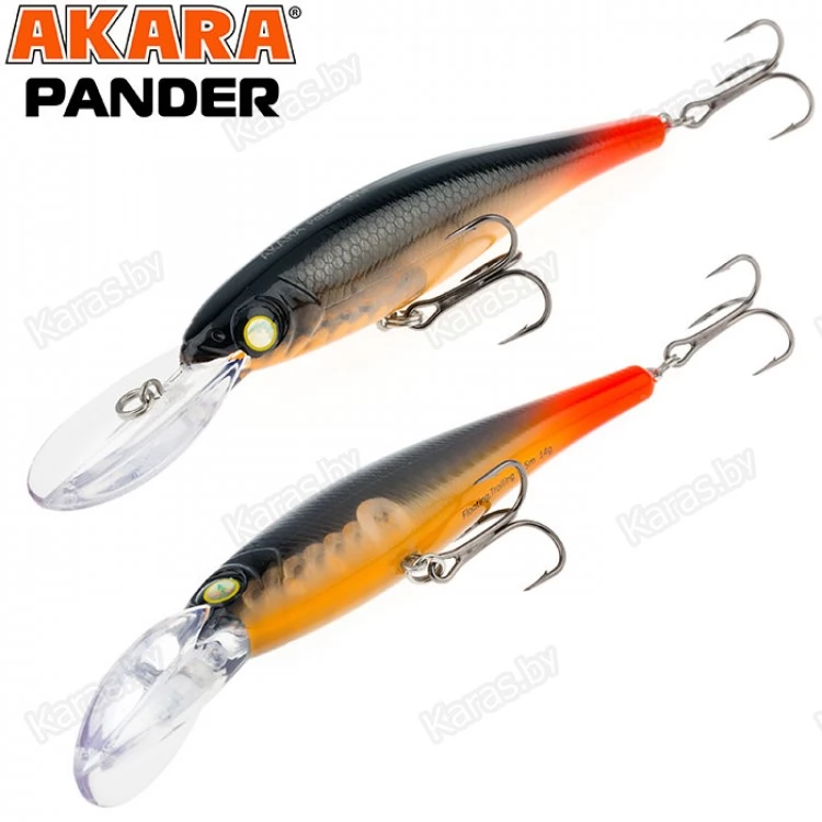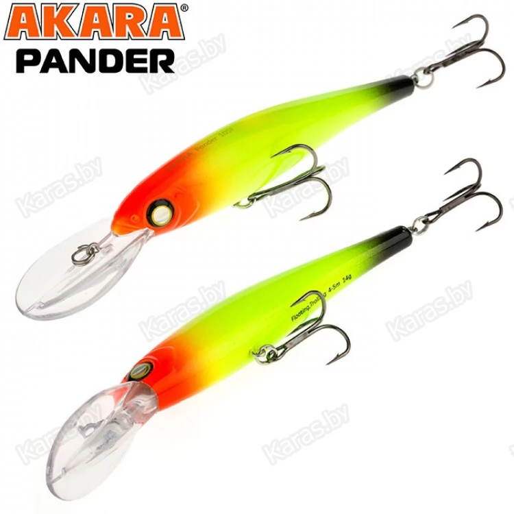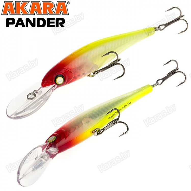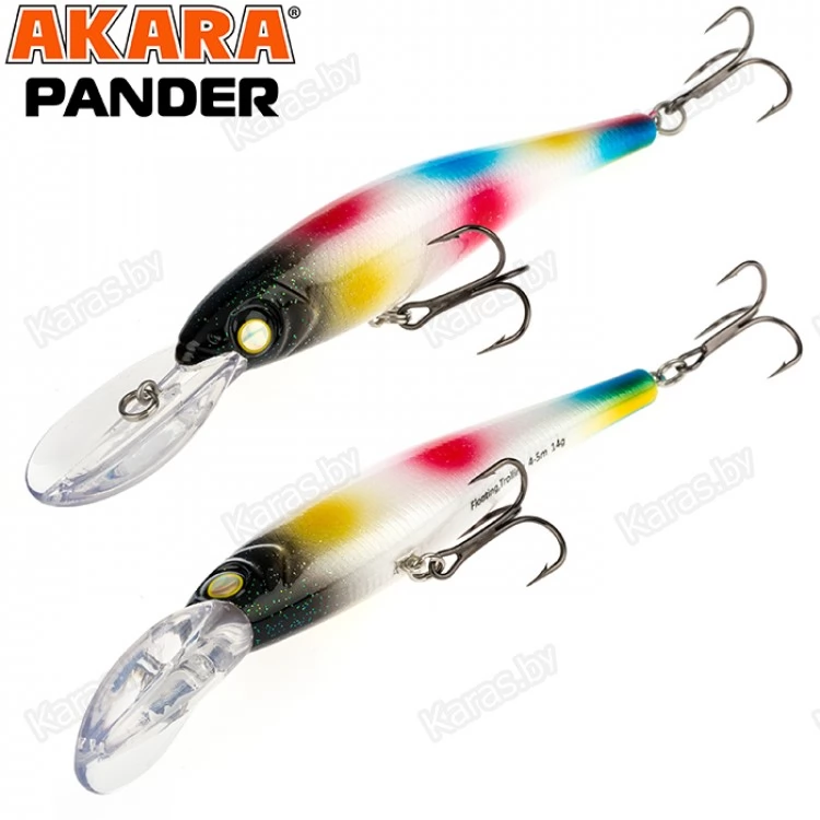Pander 105F – классический воблер, рассчитанный на ловлю как троллингом, так и в заброс, позволяет ловить любую хищную рыбу на глубине до 5 метров. Обладает хаотичной, рыскающей игрой, имитируя раненую рыбку. Расцветки позволяют подобрать модель под любые условия ловли.
