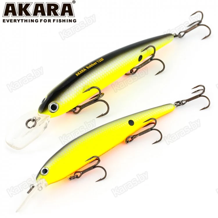 Robber 120F - популярная за счет своей эффективности приманка для ловли на дорожку и в заброс. Стабильная игра при любой скорости проводки не оставит без внимания любого, даже пассивного хищника. Плавающий. Акустический. Заглубление при кастинге от 1,5 до 2,5 м, при троллинге от 2,0 до 3,5 м.