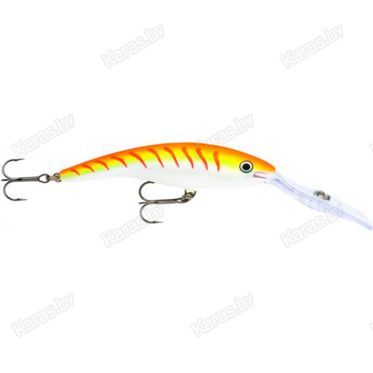 Rapala Deep Tail Dancer - специально разработанный конструкторами Rapala "бананообразный" воблер, который самостоятельно, без помощи дополнительных устройств, достигает глубины 9 м, где в жару "отлеживаются" трофейные экземпляры. При всех положительных достоинствах, Deep Tail Dancer благодаря мощной глубоководной лопасти, быстро погружается на нужную глубину. Семейство Tail Dancer обладает стабильной игрой на любых скоростях проводки. Тройники VMC Black Nickel готовы противостоять самому жесткому сопротивлению.