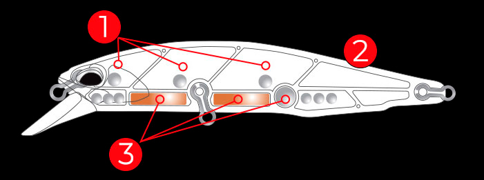 1. При проводке продуманная внутренняя огрузка с тщательно спроектированными внутренними камерами и стальными шарами обеспечивает прекрасный баланс и издает многочастотный звук, который дополнительно привлекает внимание хищника.