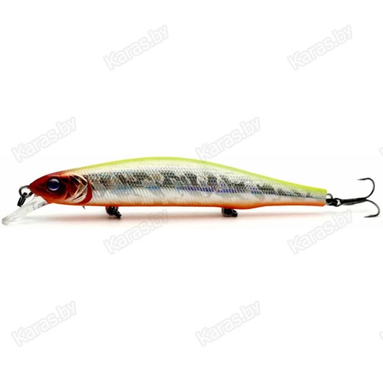 Прототипом для линейки Kosadaka Mascot послужило семейство, пожалуй, самых известных среди отечественных спиннингистов минноу под названием Orbit. И, необходимо отметить, несмотря на куда более демократичный ценник, недорогие приманки получились весьма уловистыми. Косадака Маскот XS 110SP в точности повторяет дизайн легендарного «Орбита» в 110 миллиметровой размерности. Вес копийного минноу равен 16.5 граммам, длина 11 сантиметрам. Плавучесть «Маскота» заявлена как нейтральная. На деле же она сильно зависит от массы применяемого поводка и может легко превращаться в медленно тонущую.