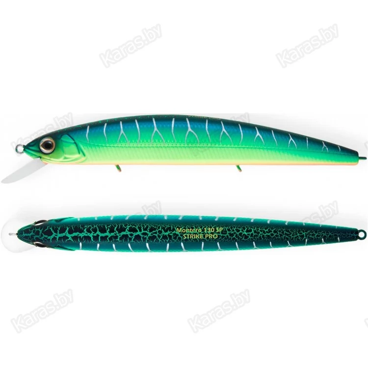 Новинку от компании Strike Pro воблер Montero 110 SP без преувеличения можно назвать приманкой высшего класса. Воблер Strike Pro Montero 110 SP очень удачно дополняет лучшие приманки класса minnow от ведущих японских компаний. Имея сопоставимые рабочие свойства, Montero 110 SP отличается несколько меньшей рабочей глубиной и меньшим сопротивлением при проводке. Рабочая глубина приманки составляет порядка 0,8 - 1,6 м - это значение несколько меньше чем у большинства приманок аналогичного типа в исполнении suspender, что актуально при облове мелководных участков, в особенности, при ловле пассивного хищника и при ловле по холодной воде, когда рыба предпочитает медленную подачу приманки и/или продолжительные паузы. Несколько меньшее сопротивление при проводке воблера Montero 110 SP допускает использование менее мощных удилищ и катушек.