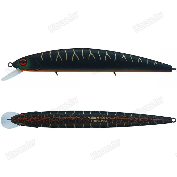 Новинку от компании Strike Pro воблер Montero 90SP без преувеличения можно назвать приманкой высшего класса. Уловистость, рабочие характеристики, качество покраски, высокая однородность изделий, качественные материалы и фурнитура – воблер Montero 90SP сочетает на самом высоком уровне. Воблер Strike Pro Montero 90SP очень удачно дополняет лучшие приманки класса big minnow от ведущих японских компаний. Имея сопоставимые рабочие свойства, Montero 90SP отличается несколько меньшей рабочей глубиной и меньшим сопротивлением при проводке. Рабочая глубина приманки составляет порядка 0,8-1,2 м; это значение несколько меньше чем у большинства приманок аналогичного типа в исполнении suspender, что актуально при облове мелководных участков, в особенности, при ловле пассивного хищника и при ловле по холодной воде, когда рыба предпочитает медленную подачу приманки и/или продолжительные паузы. Несколько меньшее сопротивление при проводке воблера Montero 90SP допускает использование менее мощных удилищ и катушек.