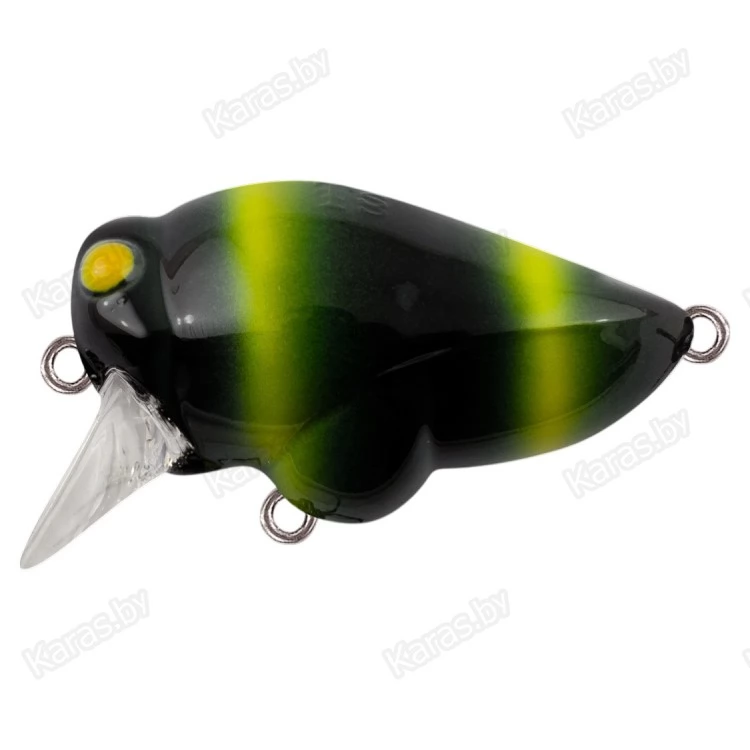 Особенности дизайна: FAKIR 40F обладает довольно коротким и толстым телом, имитирующим тело крупного летающего насекомого – цикады. Головная часть воблера с сильно выдающимися по бокам глазками имитирует голову настоящего насекомого. Фактура поверхности приманки – гладкая, снизу имеется выраженное утолщение на брюшке, которое завершает реалистичный дизайн всей приманки. FAKIR 40F оснащен системой баланса, шарик которой выполняет еще и роль шумового сопровождения, постукивая при анимации. Приманка комплектуется двумя острыми тройниками соответствующего размера, а также надежной фурнитурой и заводными кольцами. Воблер имеет современное качественное лакокрасочное покрытие и широкий выбор расцветок в каталоге.