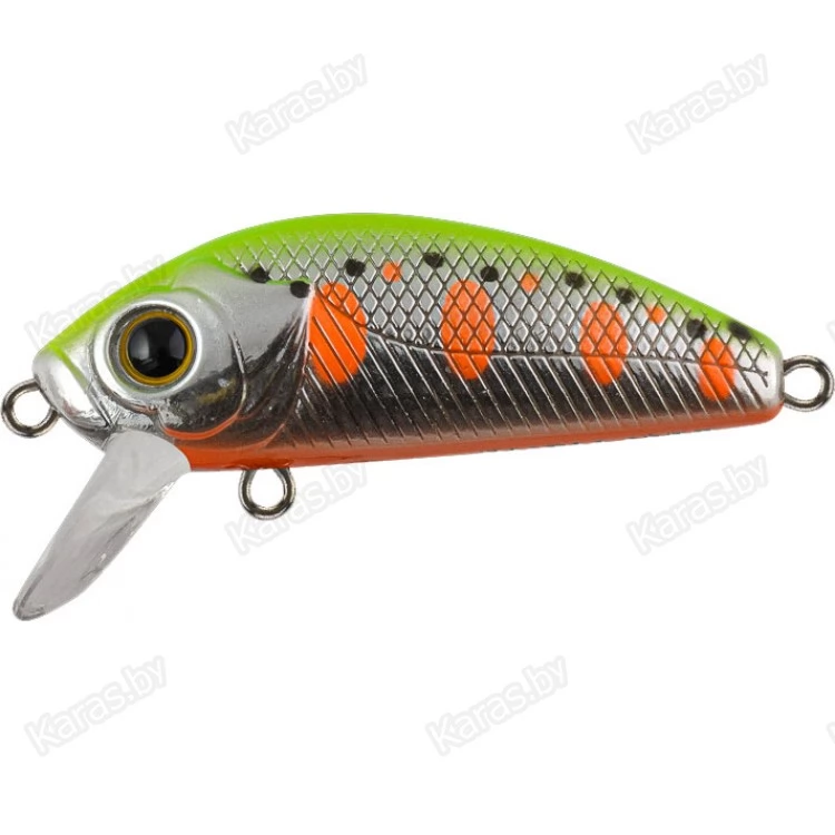 Особенности дизайна: GNOM 45S имеет две, разделенные боковой линией, рельефные фактуры поверхности. Верхняя часть выполнена в виде ромбовидных насечек - чешуек, нижняя (вплоть до брюшка) в виде косых насечек. Головная часть воблера рельефно имитирует жаберные крышки рыбки, а 3D глаза дополняют реалистичность дизайна всей приманки. Вооружение приманки - два тройника Owner Cultiva Stinger соответствующего размера. Традиционно для воблеров TsuYoki - высококачественное ЛКП.