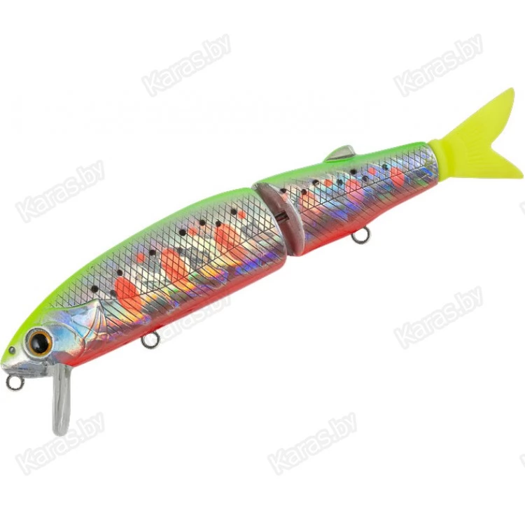 Особенности дизайна: GOT 115SP имеет подвижное двухсоставное тело с заменяемым силиконовым хвостиком. Воблер имеет две, разделенные боковой линией, рельефные фактуры поверхности. Верхняя часть выполнена в виде ромбовидных насечек - чешуек, нижняя в виде косых насечек. Головная часть приманки имитирует голову реальной рыбки, от рельефных жаберных крышек до реалистичных 3D глаз. Имеется система баланса, шары которой еще и гремят при проводке, заменяя шумовую камеру. Оснащение GOT 115SP двумя тройниками Cultiva Owner соответствующего размера, качественной фурнитурой и силовыми заводными кольцами придает воблеру законченный и солидный внешний вид. Качество исполнения приманки , включая ЛКП, на высоком уроне.