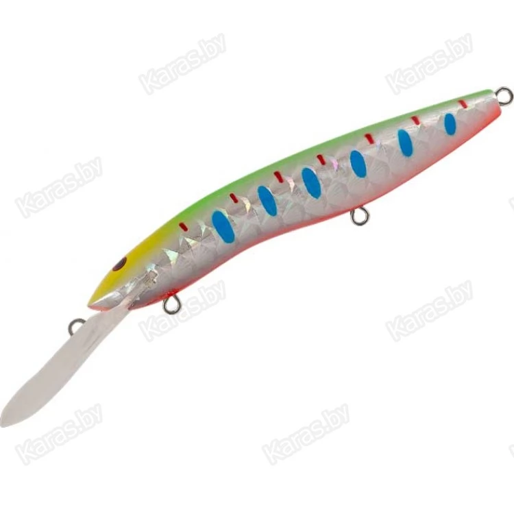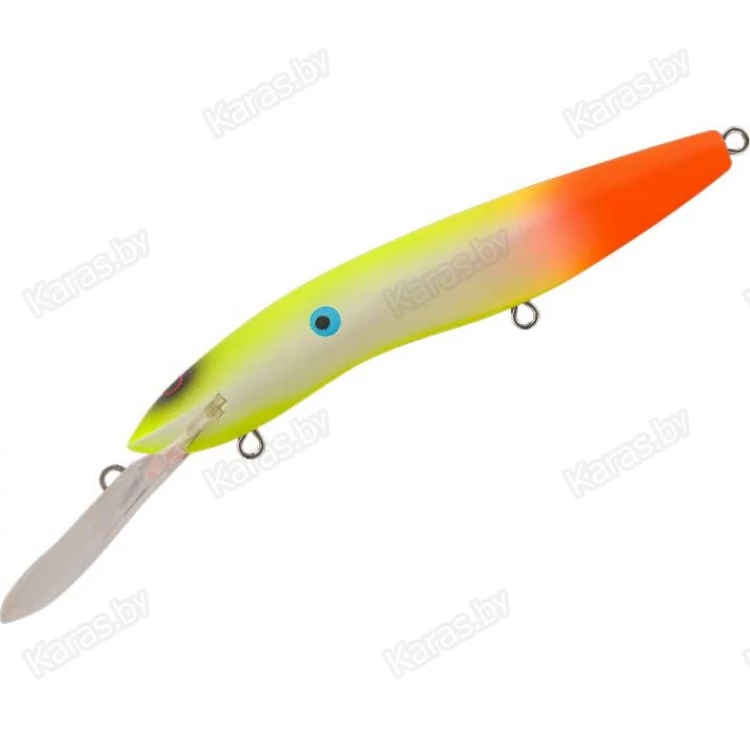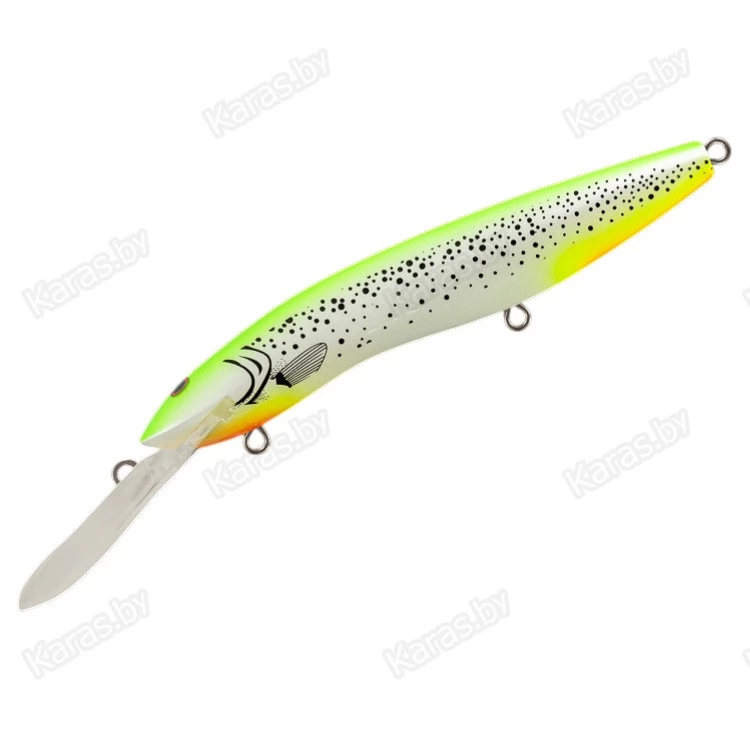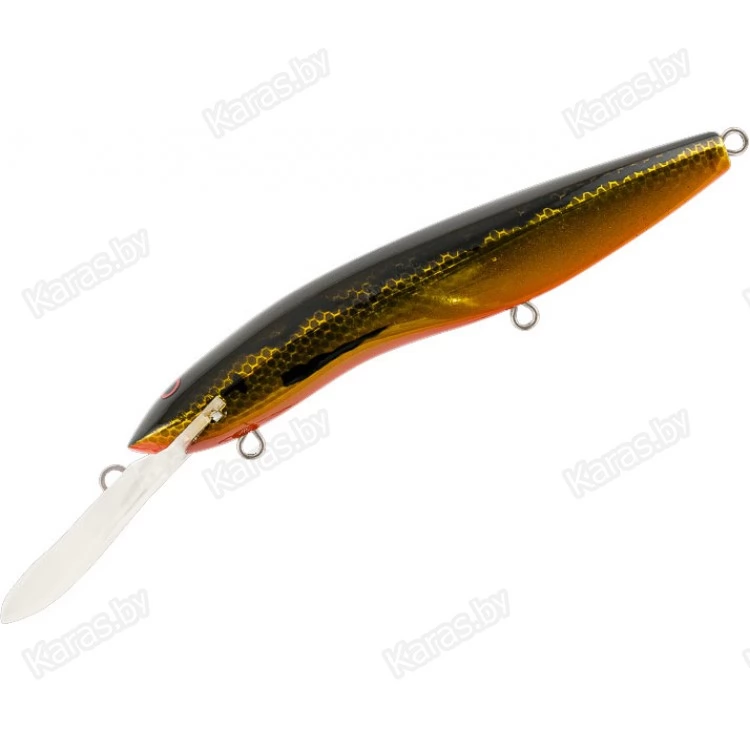 Крупный минноу для ловли троллингом на неоднородном рельефе и свалах с глубинами 3-10 метров. Основные трофеи – судак, щука, сом.