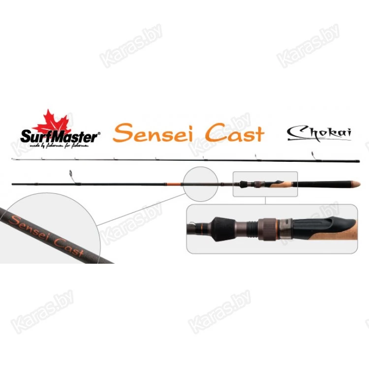 Sensei Cast - линейка спиннингов для контактных видов ловли: твич, джиг, ловля с отведенным поводком, техасская оснастка. Спиннинг строя Medium-Fast обладает сбалансированным бланком, позволяющим выполнять точные и дальние забросы. Способность бланка выдерживать повышенные нагрузки позволяет ловить «через траву» и справиться с хищником любого размера. Расстановка колец произведена по технологии New Guide System, при которой определяется оптимальное их расположение, количество и размер, что позволяет наиболее эффективно распределить нагрузку на бланк, сохраняя его высокую чувствительность при проводке. Кольца Fuji.