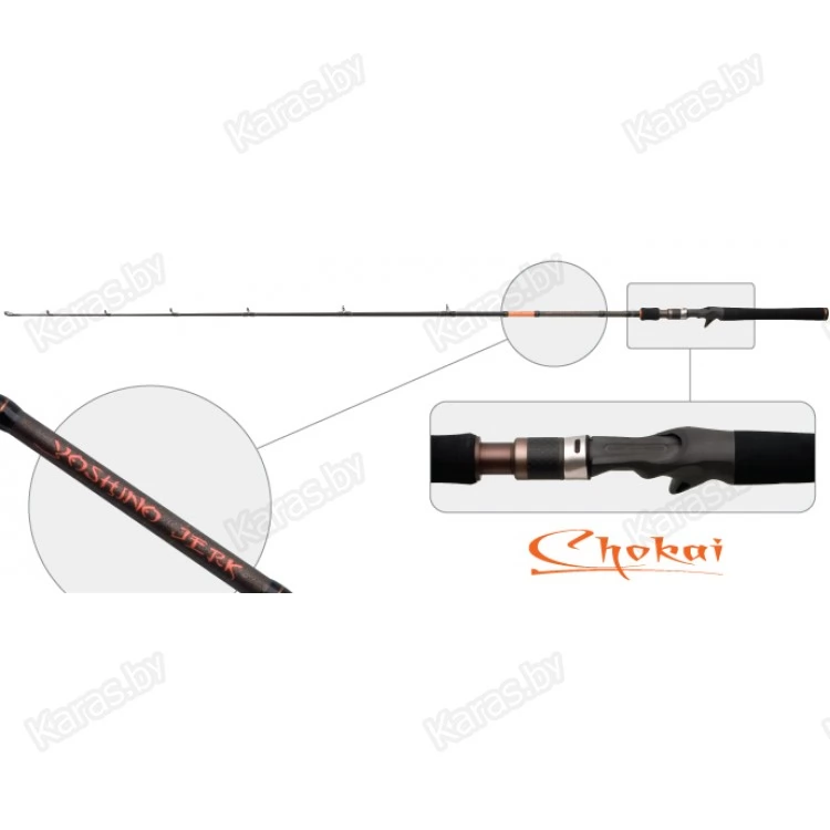 Линейка джерковых одночастных курковых спиннингов Yoshino Jerk представлена в двух длинах. Спиннинг строя Medium Fast обладает сбалансированным бланком, позволяющим выполнять точные и дальние забросы. Способность бланка выдерживать повышенные нагрузки позволяет ловить «через траву» и справиться с хищником любого размера. Расстановка колец произведена по технологии New Guide System, при которой определяется оптимальное их расположение, количество и размер, что позволяет наиболее эффективно распределить нагрузку на бланк, сохраняя его высокую чувствительность при проводке. Облегченные кольца на силовой конструкции.  EVA рукоять. Катушкодержатель Fuji куркового типа.