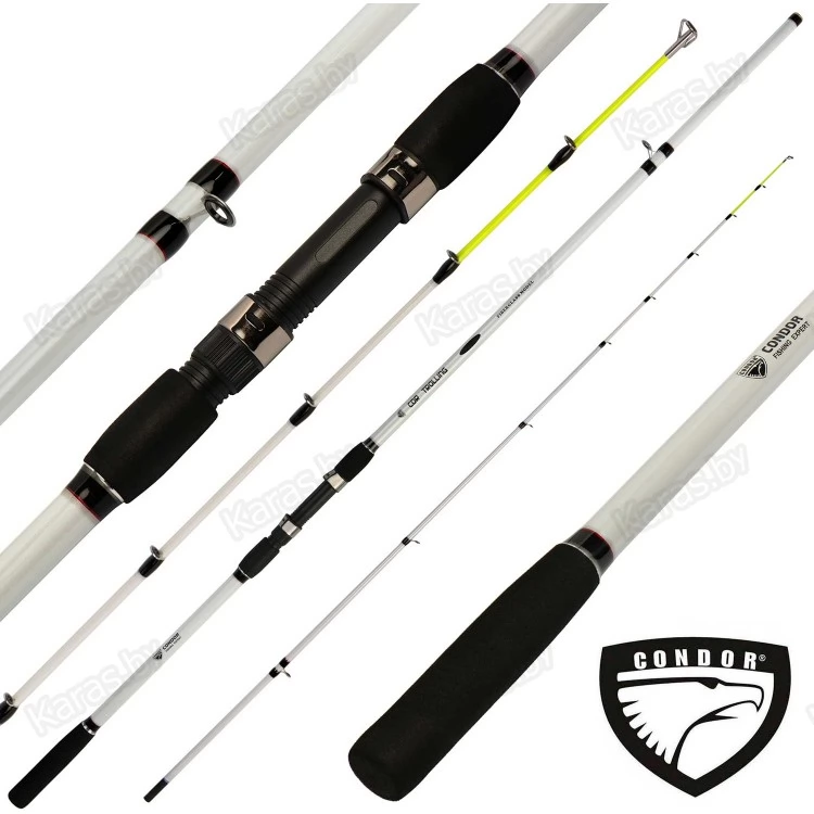 Спиннинг штекерный для троллинга Condor Searider – это высококачественная троллинговая серия, которую по достоинству оценит каждый рыбак. Удилища отличаются небольшой длиной, тонкой чувствительной вершиной и мощным бланком с прогрессивным строем, второе колено которого переходит в тонкий кивертип. Штекерные модели изготовлены из прочного высококачественного стеклопластика. Эргономичная рукоятка выполнена из EVA. Спиннинги Condor характеризуются прекрасной мощностью для броска тяжелой кормушки, ими комфортно ловить рыбу как с лодки, так и берега. На них установлены кольца со вставками SIC.