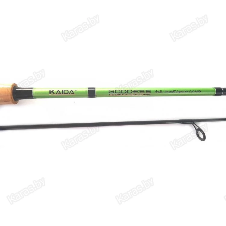 Спиннинг WEIDA Goddess длиной 240 см является не дорогим универсальным спиннинговым удилищем для ловли хищной рыбы, его можно использовать для ловли различными силиконовыми приманками, блеснами, воблерами. Класс удилища MediumLight (Медиум Лайт) позволяет использовать приманки весом от 5 до 20 грамм. Бланк средне-быстрого строя изготовлен из карбона марки IM7 и оборудован кольцами с керамическими вставками Advanced SIC. В ручку из пробкового дерева встроен качественный катушкодержатель с нижней гайкой.