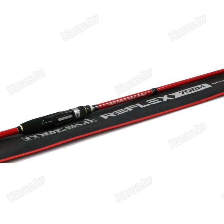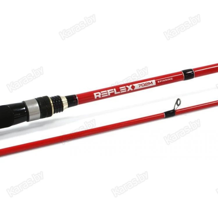 Удилища линейки Reflex – это спиннинги, предназначенные для ловли на джиговые приманки или такие типы воблеров, которые отзываются лучше всего на ведение рывками. Полая вершинка (tubular) придает бланку больше информативности, способствуя более точной проводке. Эта модель отнесена к типу медиум-хэви и рассчитана на ловлю приманками, весящими от 10 до 42 гр. С таким удилищем можно добыть крупный хищный трофей. Вес равен всего 156 гр при длине в 244 см. Столь малая масса снасти при высокой прочности достижима за счет использования карбона марки HMC для изготовления бланка. Рукоять Reflex разнесенная, для ее покрытия используется пористый материал ЭВА. Для оснащения - фурнитура KR-SiC. Эти кольца мало весят, снижают трение при выполнения заброса, тем самым повышая его дальность и продлевая срок работы шнура.