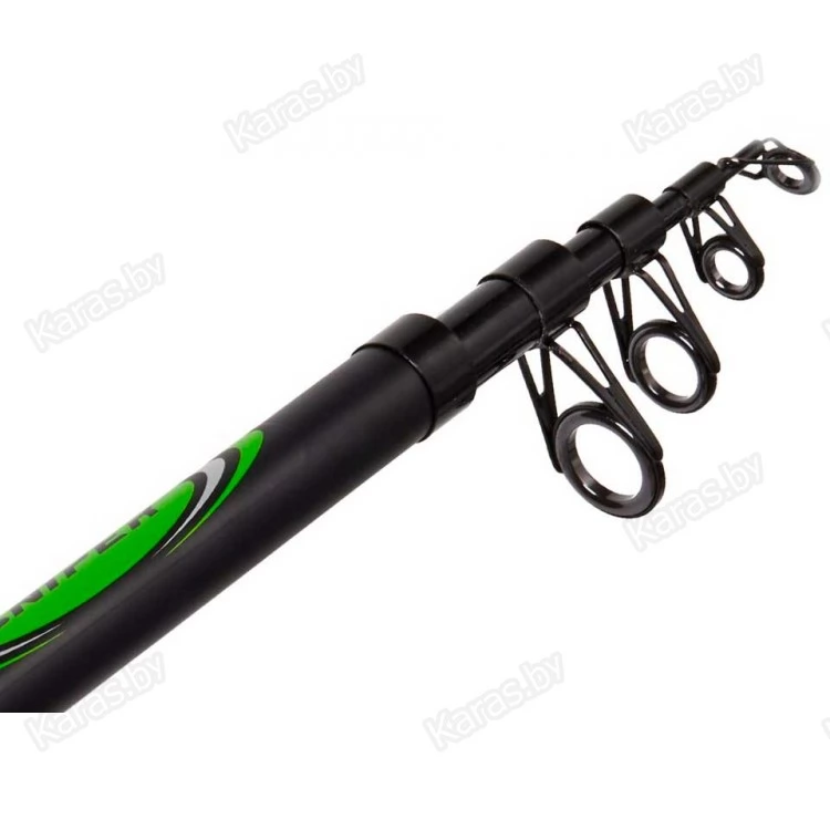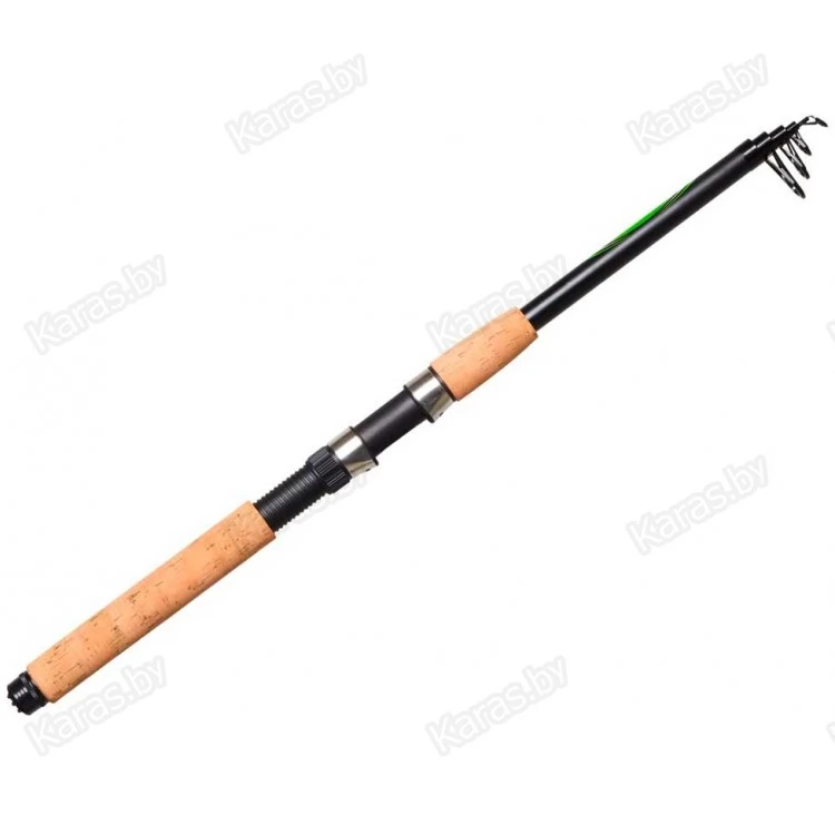 Компактное телескопическое удилище из композита, среднего строя, оснащено надежными кольцами со вставками SIC. Пробковая рукоятка с нижней гайкой крепления катушки имеет технологический откручивающийся пластиковый колпачок на торце.