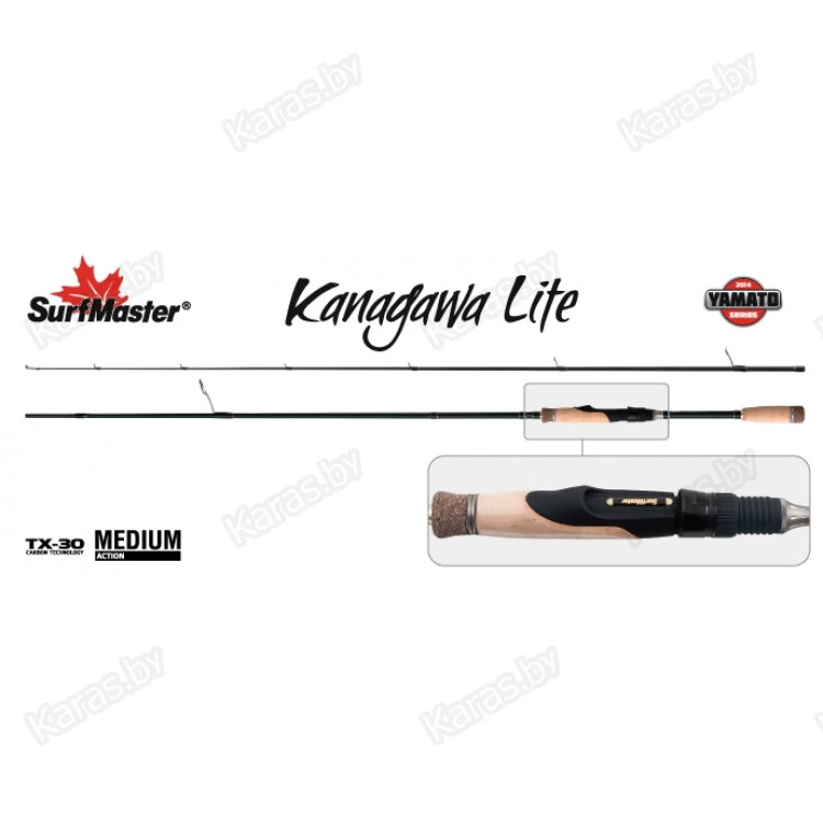 Линейка лайтовых спиннингов Kanagawa Lite представлена в четырех длинах. Бланк спиннинга изготовлен с применением технологии UPIT (Under Pressure Innovative Technology), при которой бланк спиннинга накатывается под давлением в термической камере автоматически. Благодаря этому удается достигнуть минимального количества связующего вещества при максимальной плотности стенок бланка. Спиннинг строя Medium бладает сбалансированным бланком позволяющим выполнять точные забросы, позволяет ловить «через траву» и справиться с хищником любого размера. Расстановка колец произведена по технологии New Guide System при которой определяется оптимальное их расположение, количество и размер, что позволяет наиболее эффективно распределить нагрузку на бланк сохраняя его высокую чувствительность при проводке. Облегченные кольца на Y-образных ножках. Разнесённая робковая рукоять. Графит Toray TX-30.