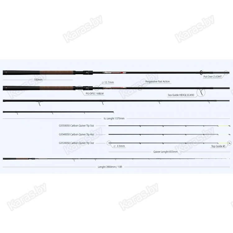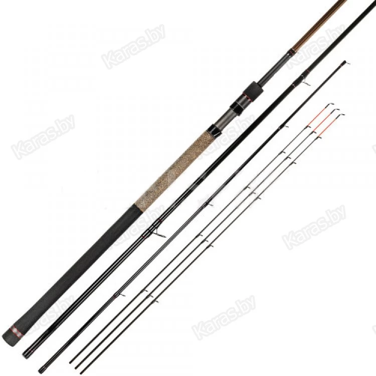 ZEMEX Razer Method Feeder 13ft – 140g Удилище класса heavy с тестом 140g. Вес фидера 276g при длине 3.90m. Это трехчастная модель с комплектом карбоновых квивертипов: 3,4 и 5oz с посадочным диаметром 3.5mm. В сет направляющих фидера входит 9 колец, первое из которых #30. Транспортировочная длина 137cm. Диапазон комфортных тестов оснасток для этой модели 60-100g, FLAT - Method 60-80g. Крейсерская дистанция ловли 60 - 70m, а при хорошей технике заброса снастью FLAT - Method может превышать 100 метров. Мощное сбалансированное удилище, предназначенное для ловли крупной рыбы и сверхдальних забросов. Прогрессивно - быстрый строй бланка позволяет осуществлять точный заброс даже в ветреную погоду. Может с успехом применяться при ловле карпов и амуров на коммерческих водоемах, а также при ловле леща за крутыми бровками на реках с умеренным течением. Кольца на квивертипах увеличенного диаметра, что позволяет применять различные шок - лидеры, а также делает комфортной ловлю в зимний период. ZEMEX Razer Method Feeder 13ft – 140g – это надежный инструмент спортивного класса, позволяющий комфортно ловить крупную рыбу при самых разнообразных условиях.