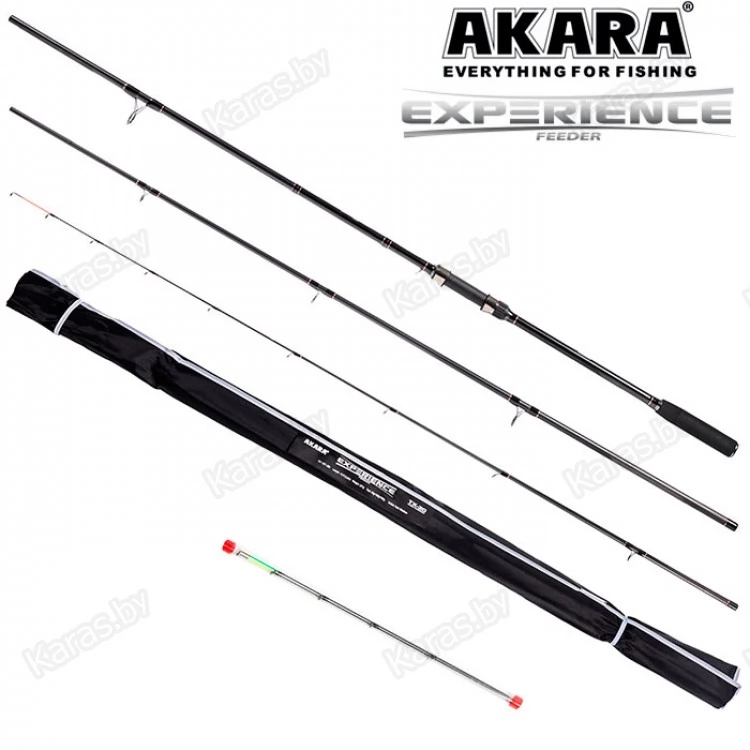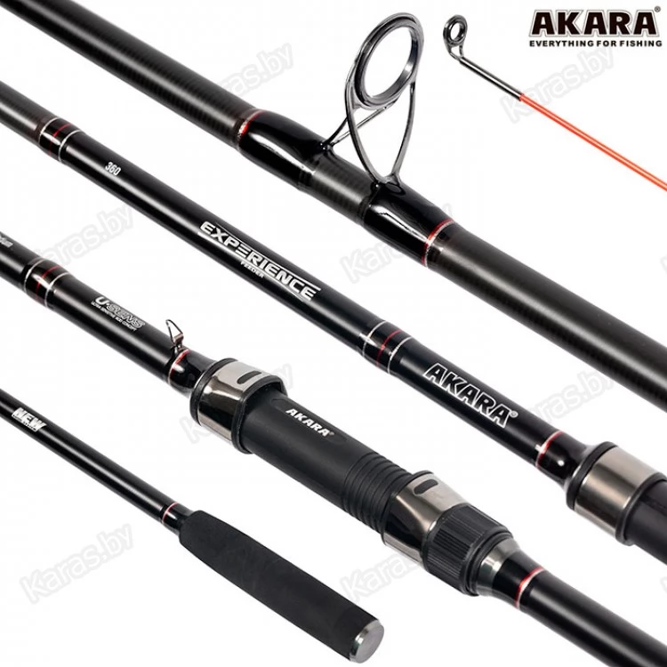 Новая серия фидерных удилищ Akara Experience. Серия удилищ представлена линейкой в двух весовых (тестовых) диапазонах 50-100-150 и 30-60-90 грамм. Удилища первого диапазона представлены в трех размерах: 330 см, 360 и 390 см. Удилища второго диапазона представлены в четырех размерах: 300 см, 330 см, 360 и 390 см. Бланки удилищ выполнены из высокомодульного карбона TX-20 производства японского концерна Toray и имеют параболический строй. Удилища оснащены кольцами Kujira с покрытием оксида циркония, что позволяет не повреждать леску при ее использовании во время заброса кормушки или вываживания рыбы. Рукоять удилища выполнена в разнесенном варианте из неопрена и оснащена надежным катушкодержателем. В комплекте каждого удилища входит три сменных хлыста (квивертипа), тубус для сменных хлыстов, нейлоновый чехол для удилища.