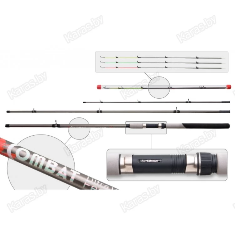 Бюджетный стеклопластиковый фидер с бланком параболического строя от SurfMaster. Отличительной чертой Combat Ultra Feeder является широкий весовой диапазон используемых снастей (от 40 до 120гр), который позволяет одинаково хорошо контролировать снасть как в стоячей воде, так и на течении. Благодаря параболическому строю фидер прекрасно справляется с дальними забросами и вываживанием рыбы любого размера. Низкопрофильные кольца. Неопреновая рукоять.